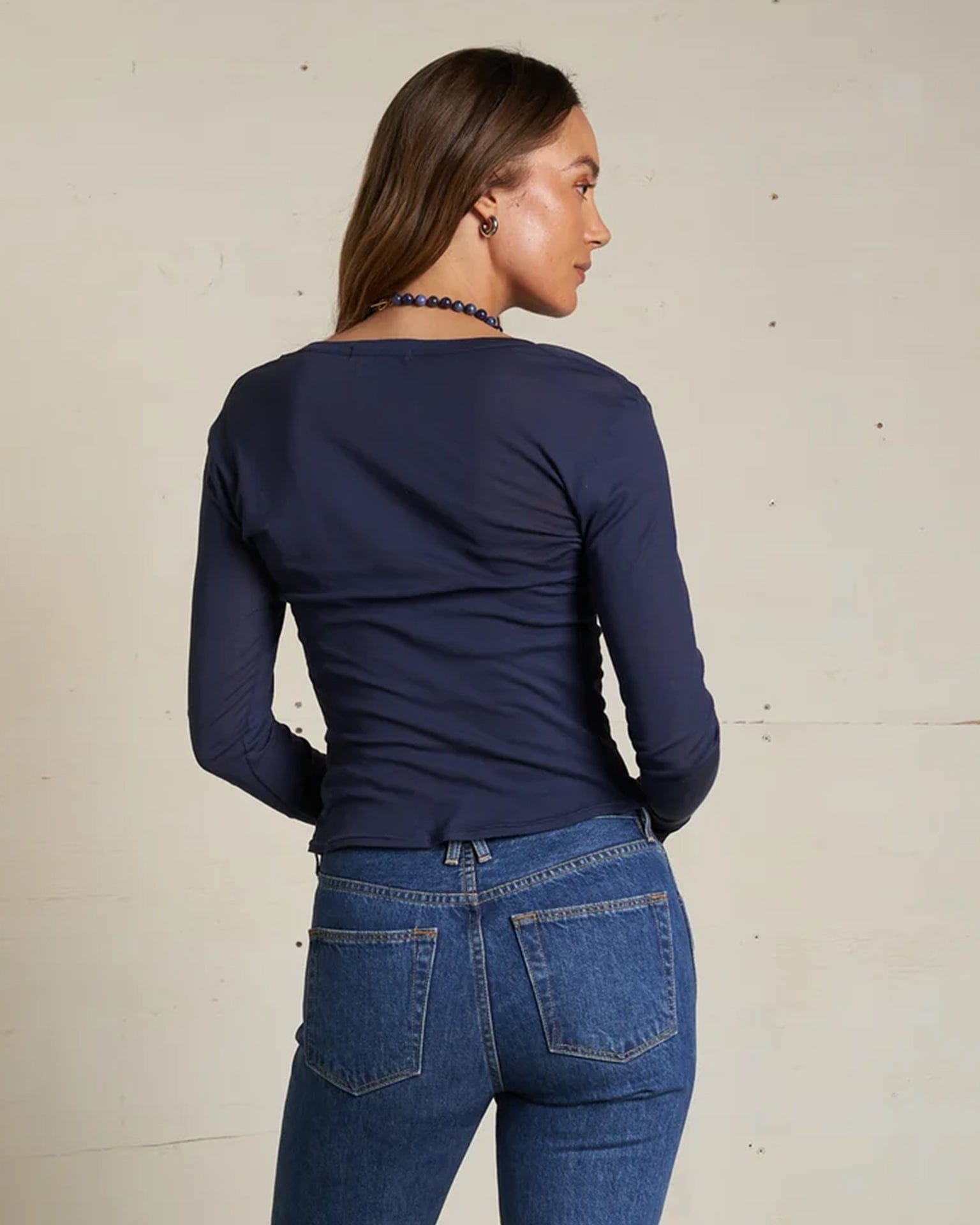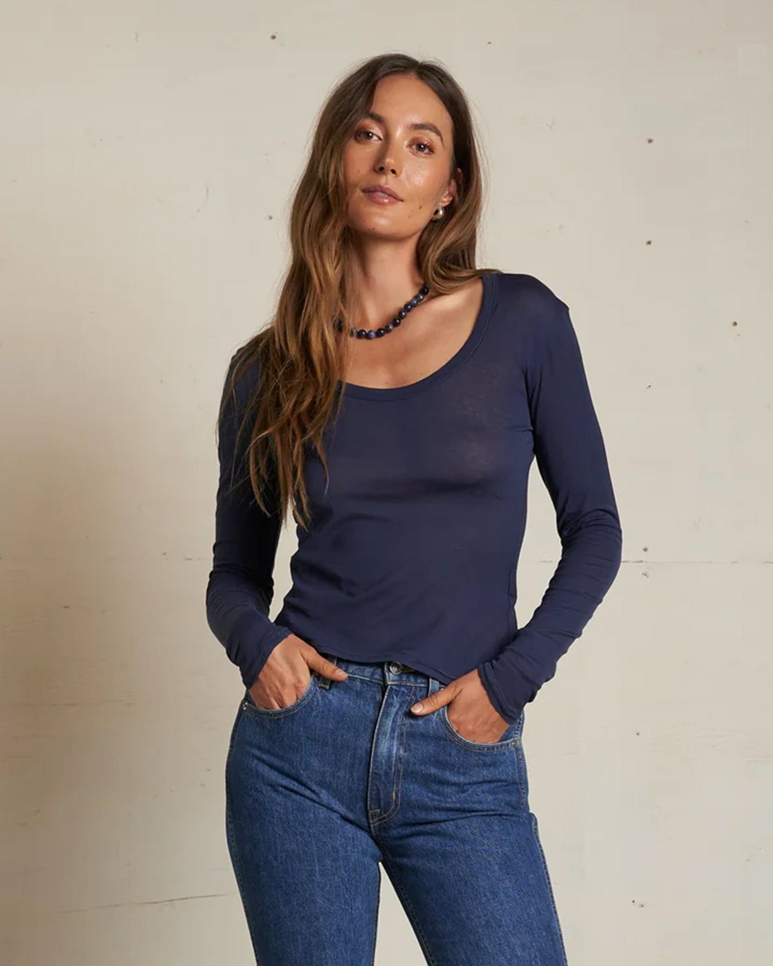 Angie Lt French Jersey Scoop L/S in Navy