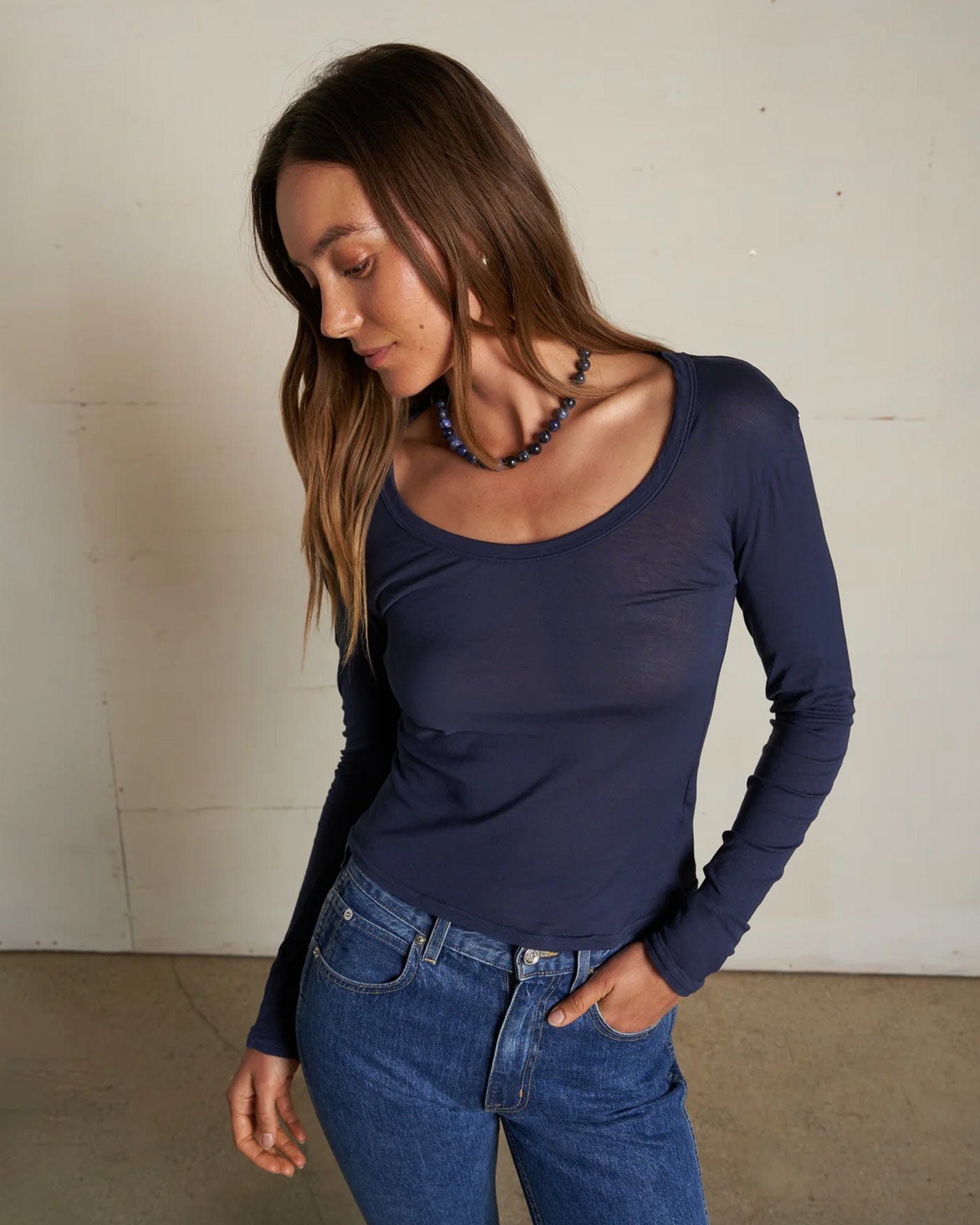 The Angie Top from perfectwhitetee is part of the light french jersey collection, designed to fit close to the body with a flattering u-neckline. Featherweight and softly sheer, it’s made to feel sleek and modern, whether styled on its own or layered under your favorite pieces. Each wash adds to its vintage appeal.