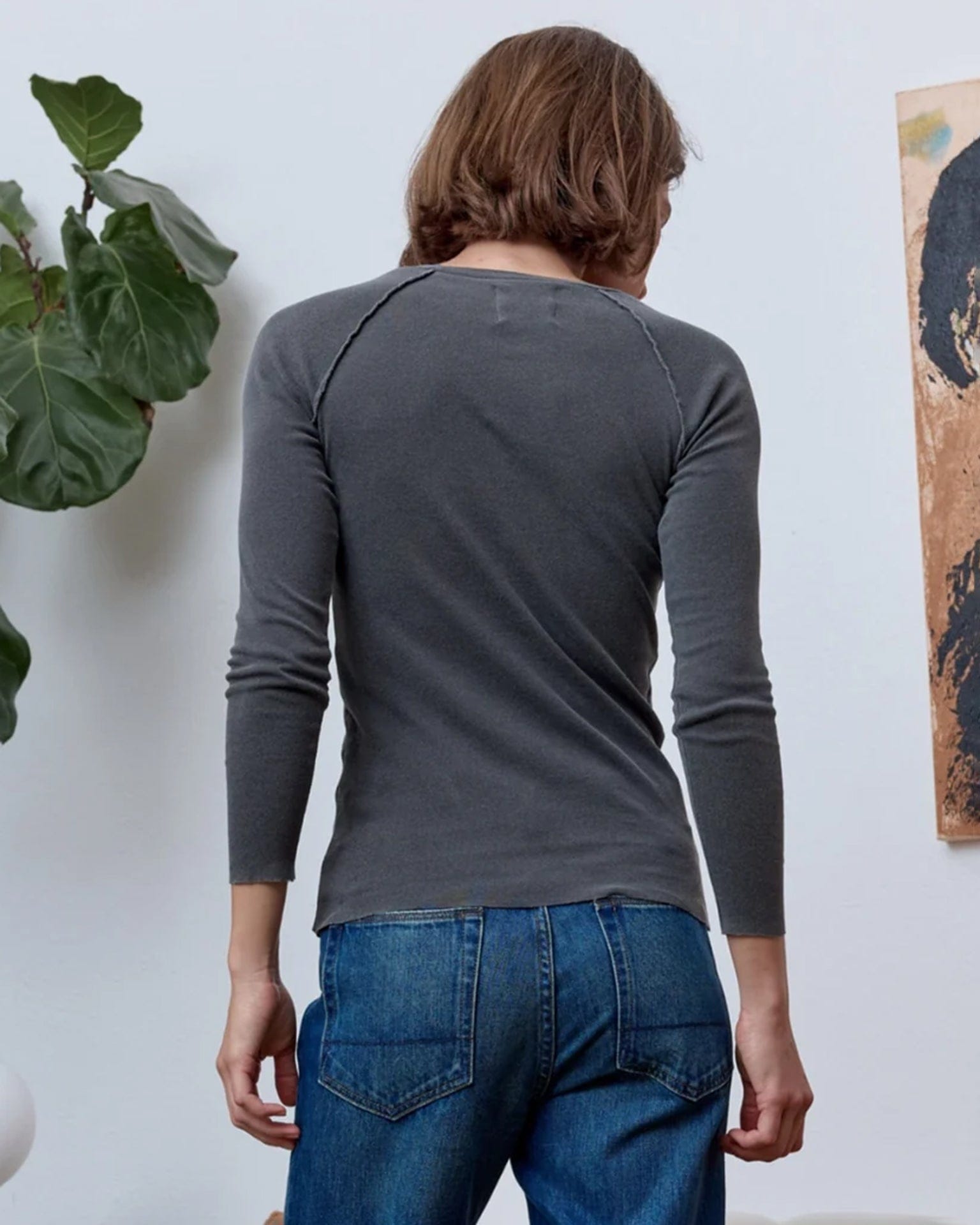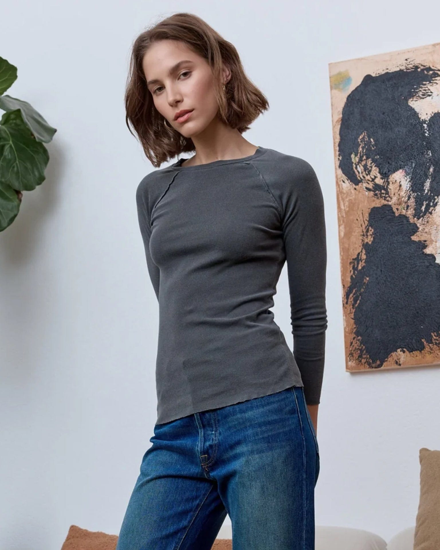 Aria Fitted Baby Rib Raglan Tee in Faded Black