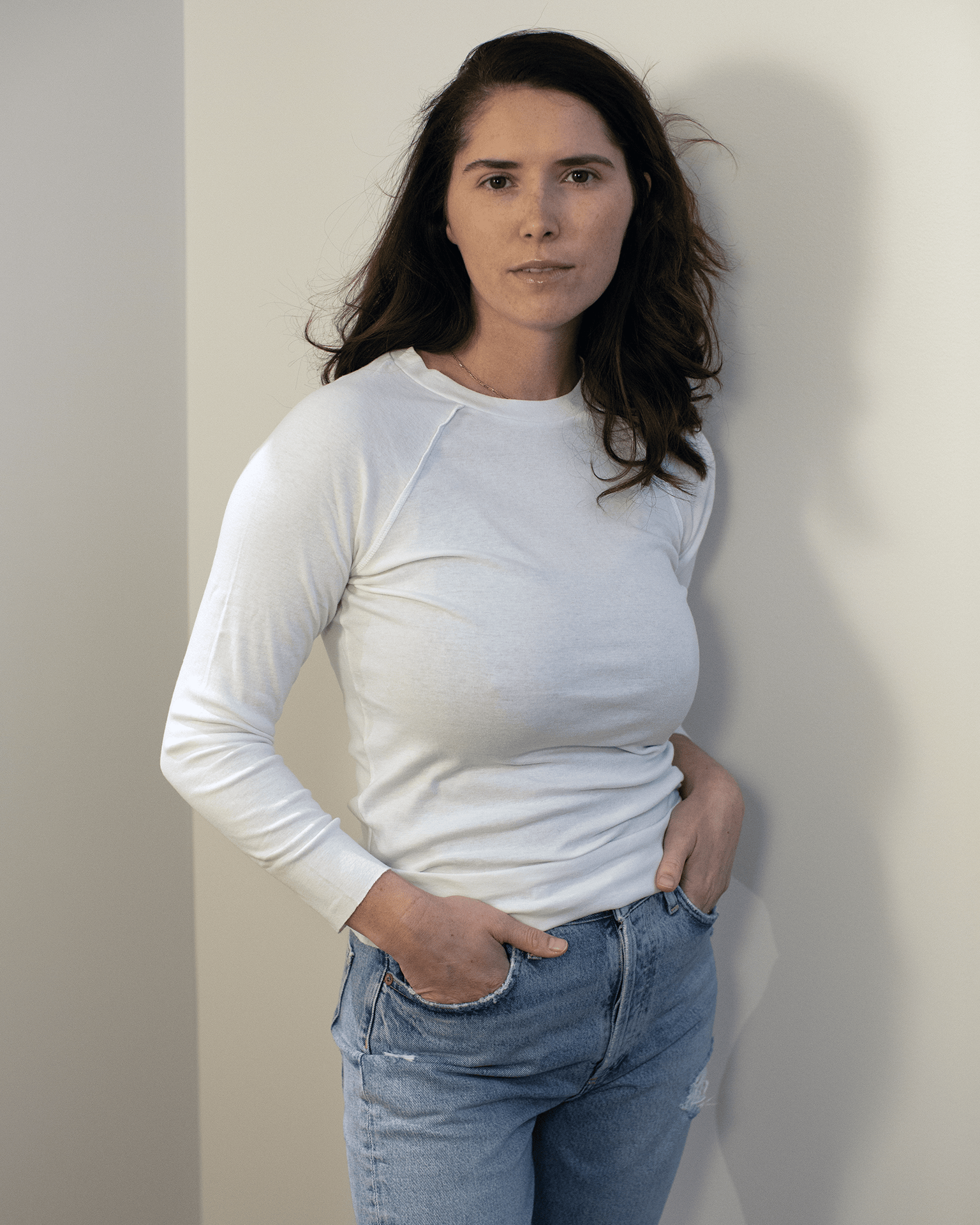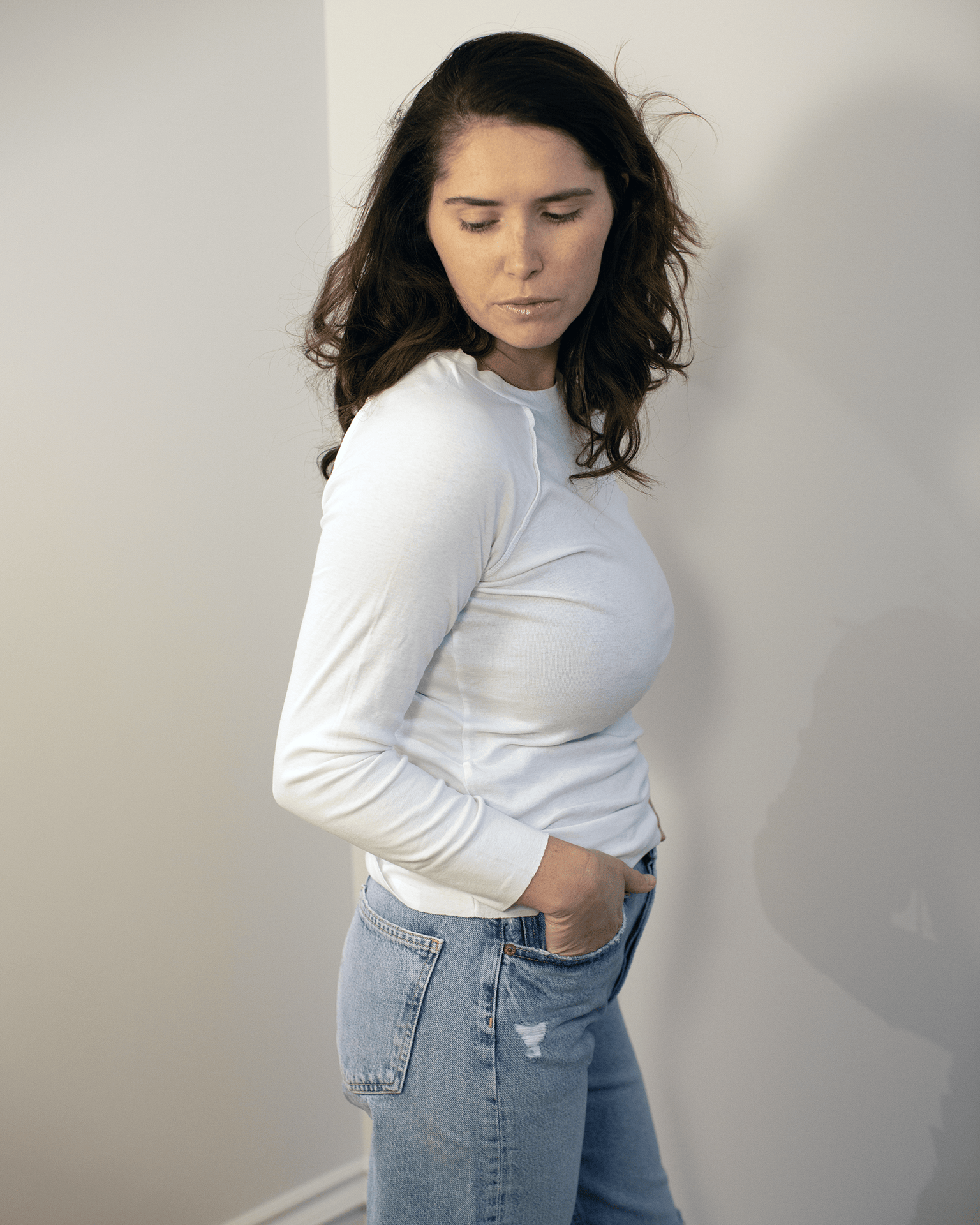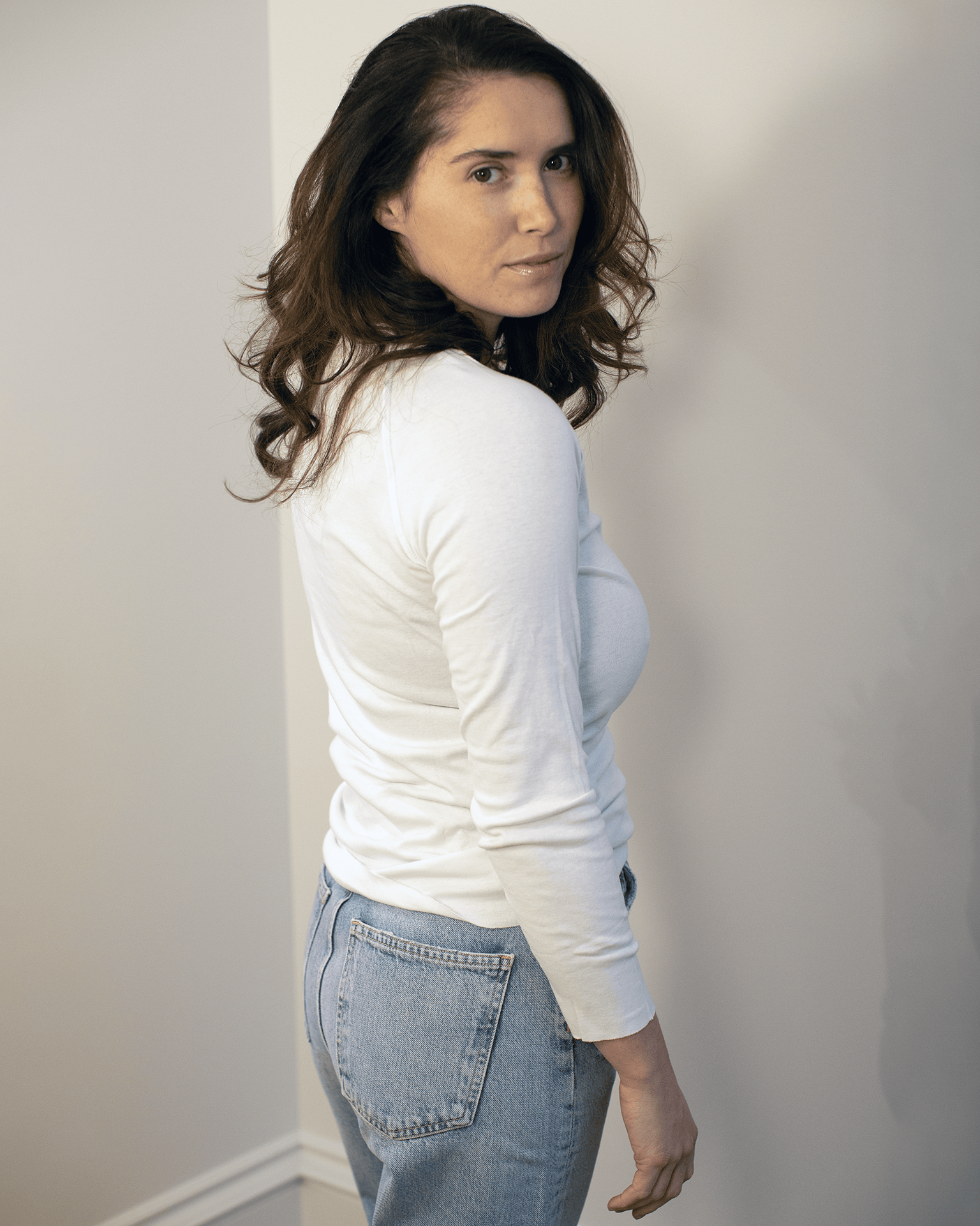 Meet your new favorite basic with perfectly elevated detailing. Aria from NSF is a flattering fitted crew with an exposed seam raglan shoulder, bracelet length sleeve, raw edges and an all over baby rib knit.