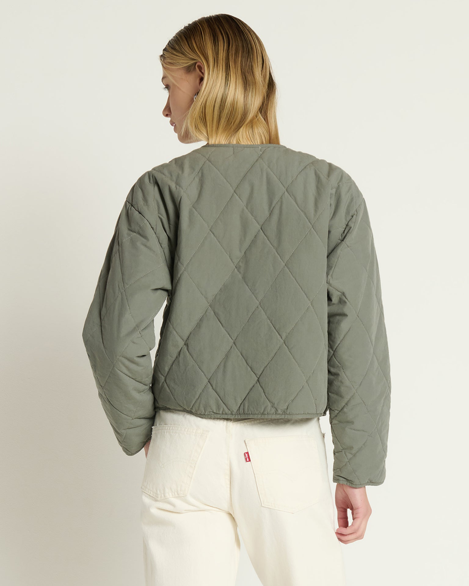 Meet Aspen, the perfect goes-with-everything layer for crisp, breezy days. This 100% cotton quilted jacket from Nation has a boxy, cropped fit, pockets, and button snaps up the center.