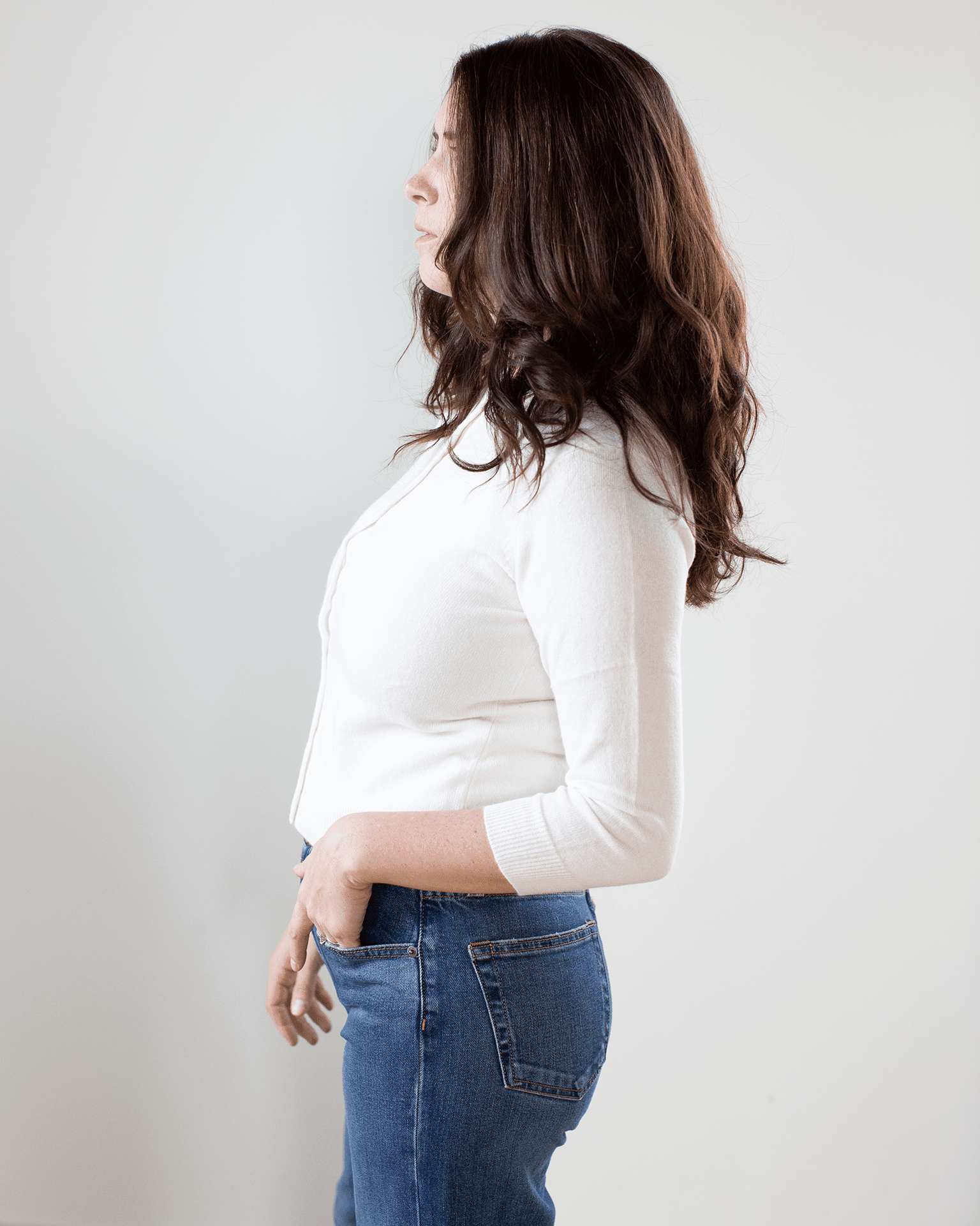 - Slim, cropped silhouette