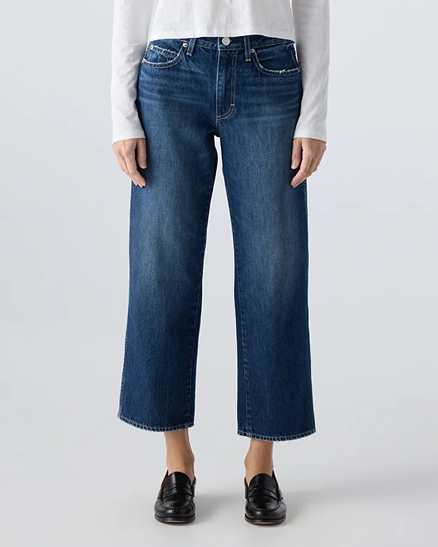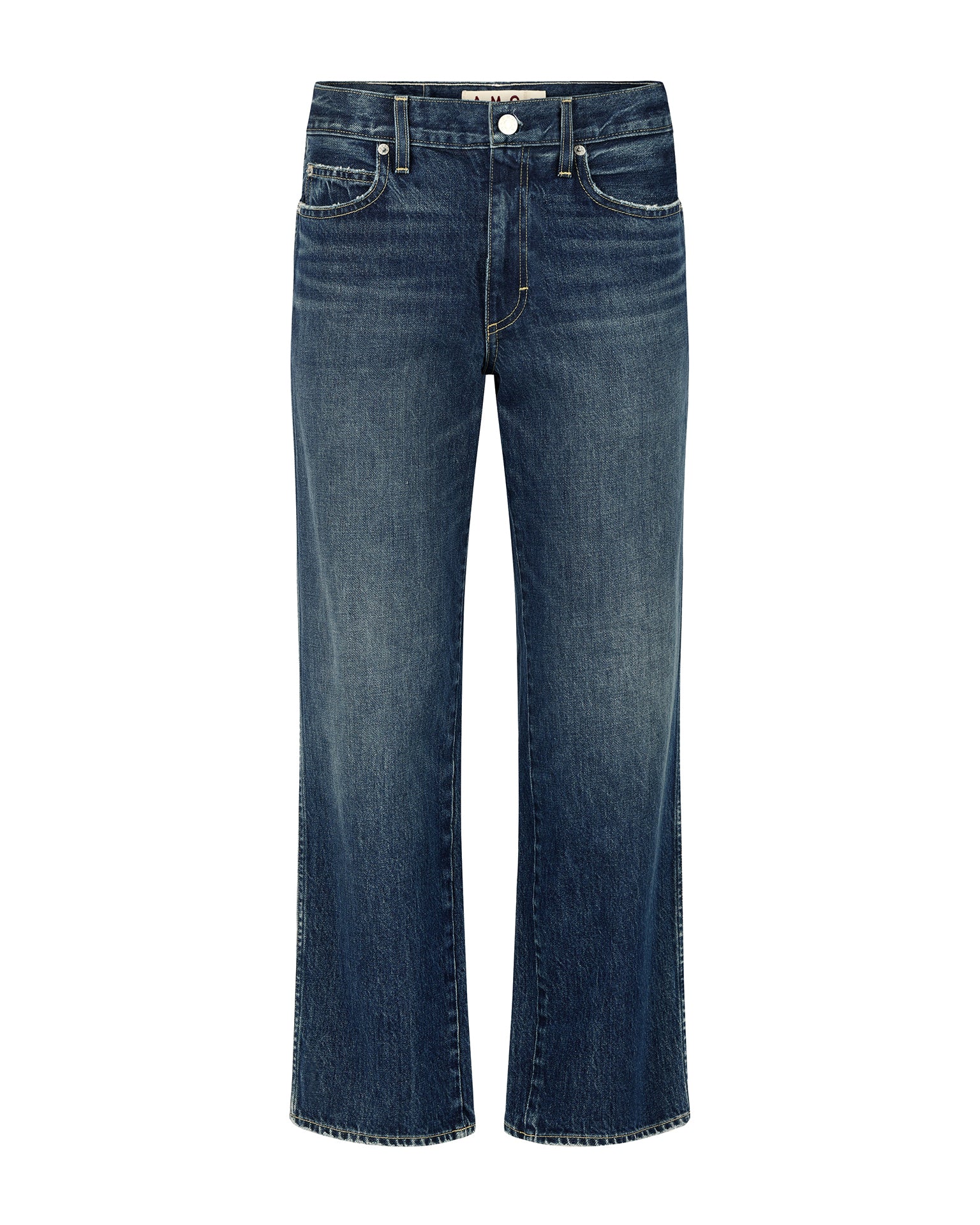Billie from AMO is a nod to the classic boyfriend jean. This cropped, wide straight leg is their easiest fit yet, with a mid-rise that's meant to sit low on the hips for a relaxed look. Cut from premium rigid denim with a mid rise, this pair is meant to sit low on the hips for a relaxed look. Intentional distressing throughout adds to its vintage appeal.