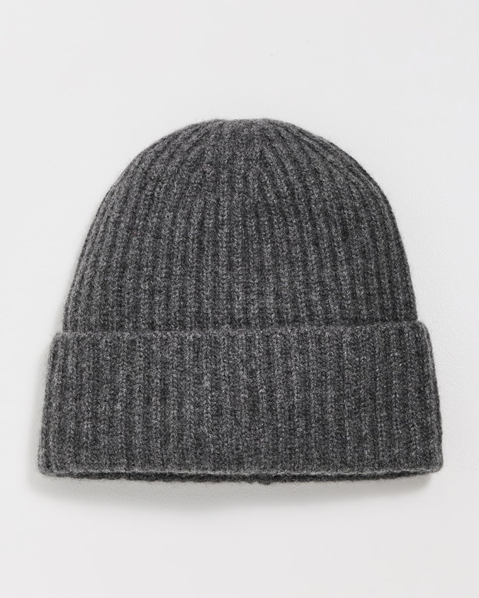 Cashmere Plush Rib Beanie in Dark Slate Heather