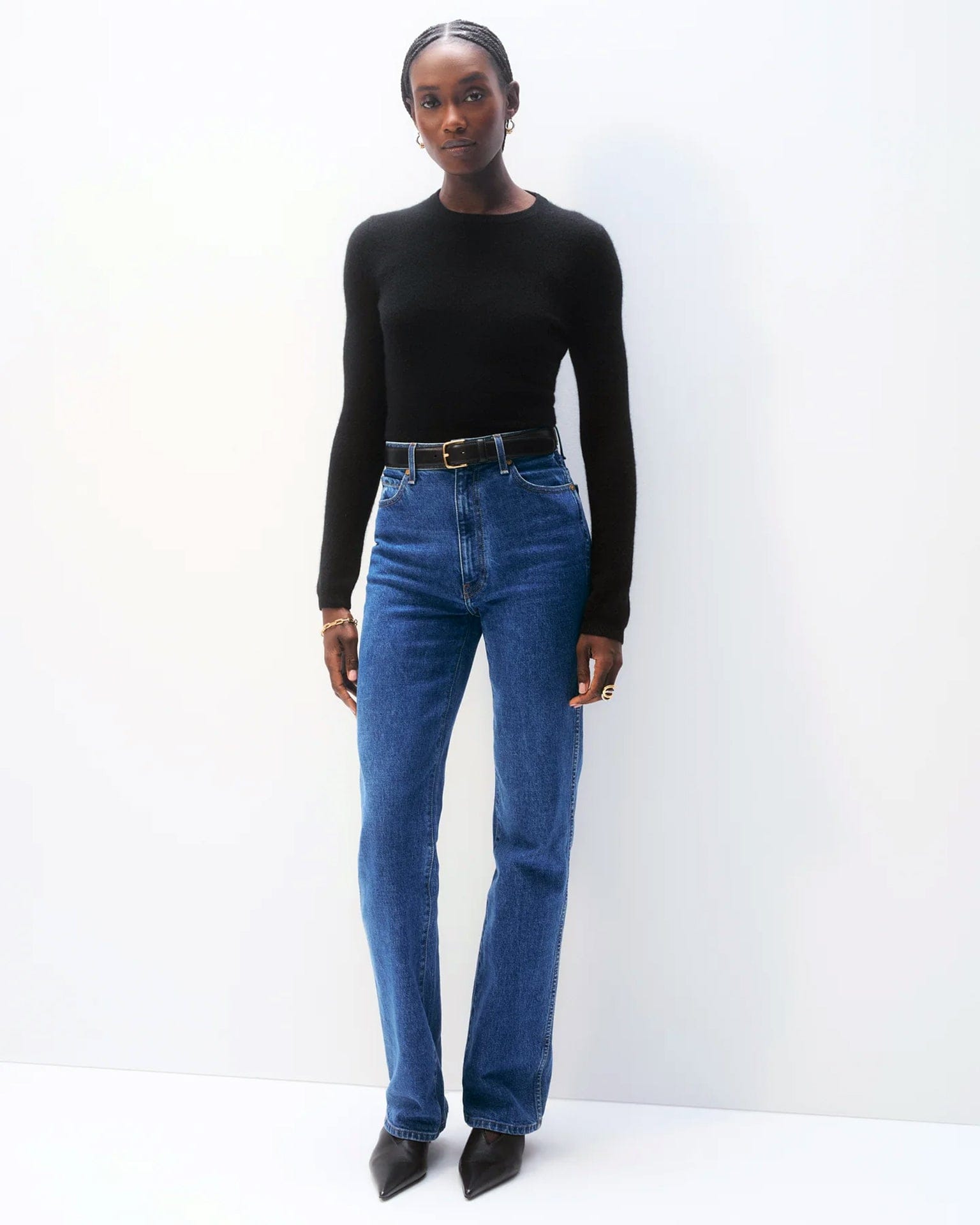 Cashmere Slim Stretch Crew in Black