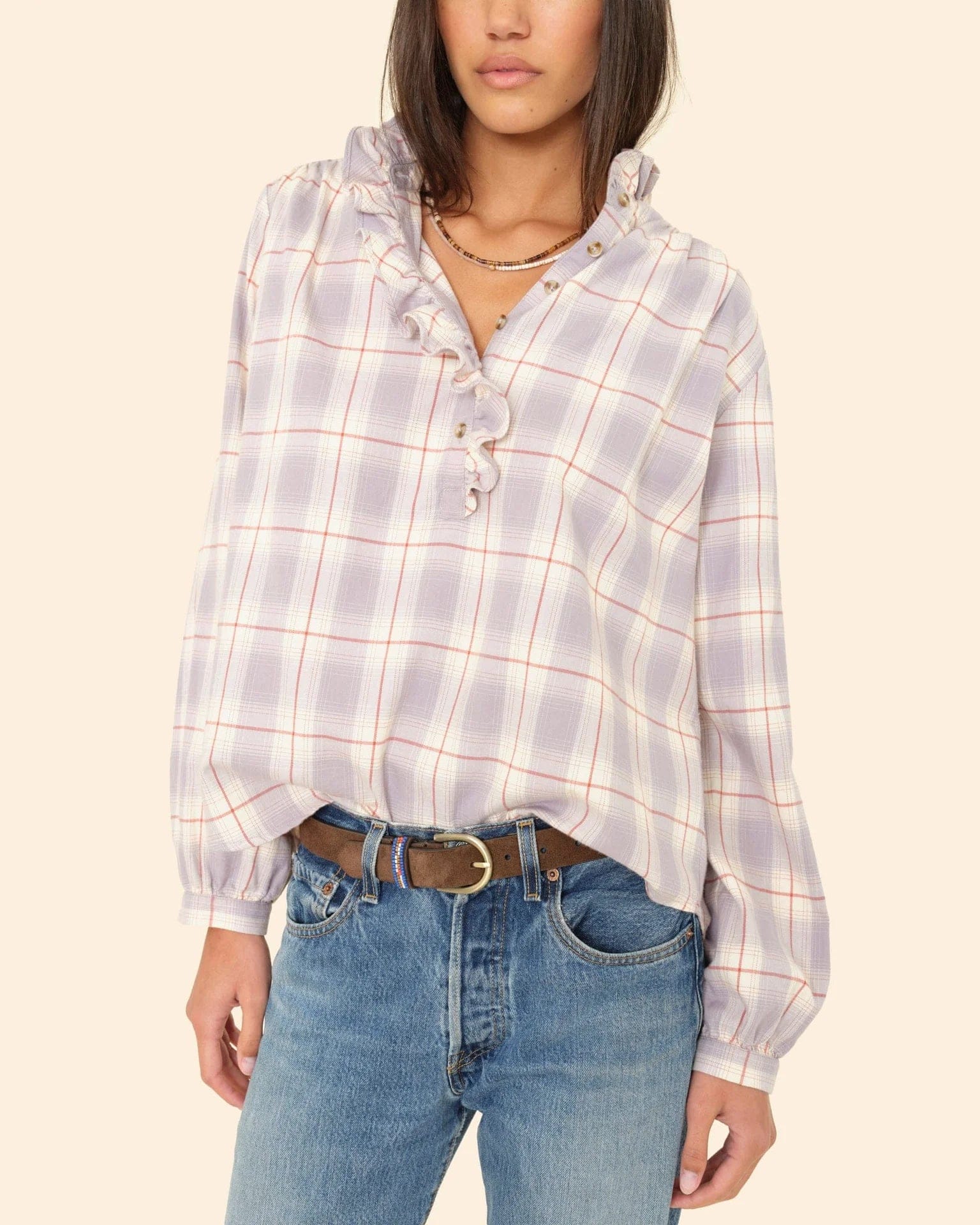 The Caspian top is a new beauty from XiRENA. This elevated henley features ruffle details all throughout the neck and front placket, shirring at the sleeves, front, and back and a high low hem. Wear it tucked into your favorite high rise denim and feel instantly chic.