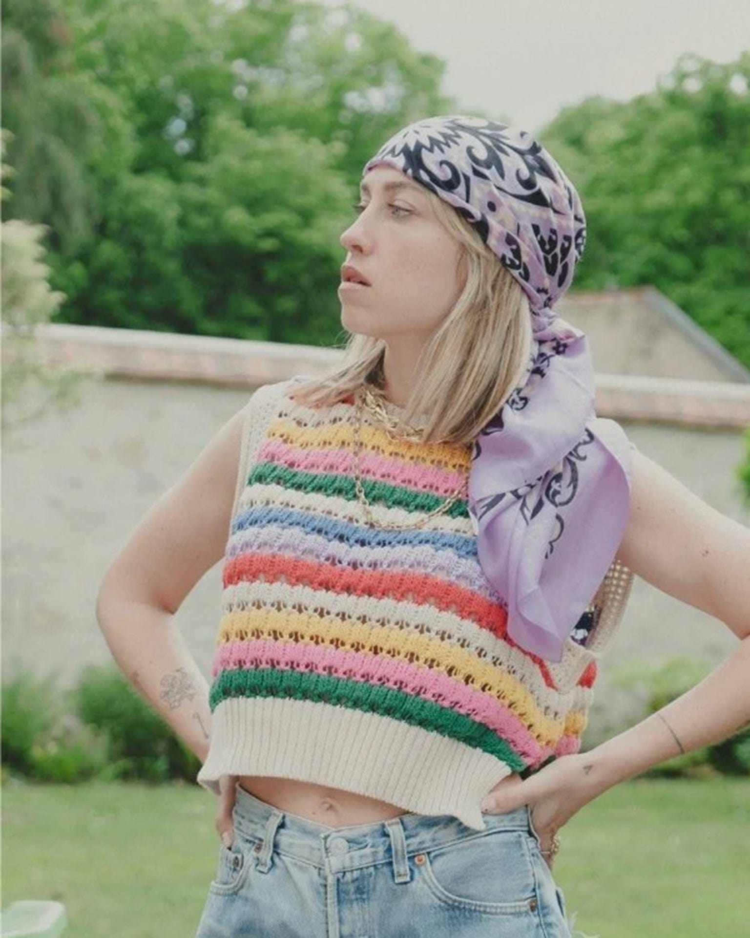 The iconic bandana pattern gets a modern update from Maison Lecomte Flament. Made from a soft and breathable cotton voile, it offers exceptional comfort while adding an airy texture to your outfit. Wear it comfortably around your neck for a classic look, tied in your hair for a bohemian touch, or even attached to your handbag for added elegance.
