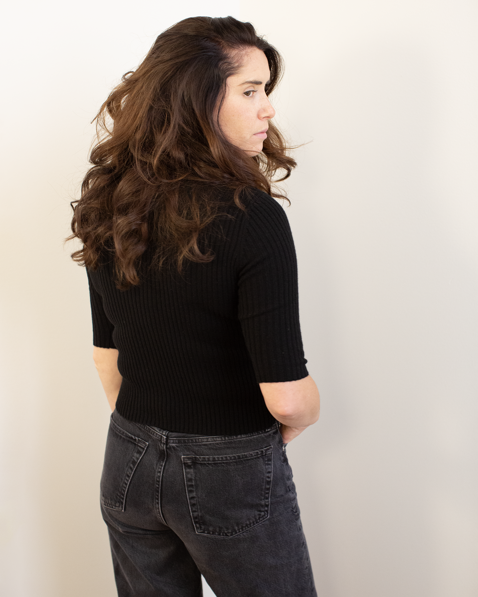 Cropped Elbow Sleeve Rib Turtleneck in Black