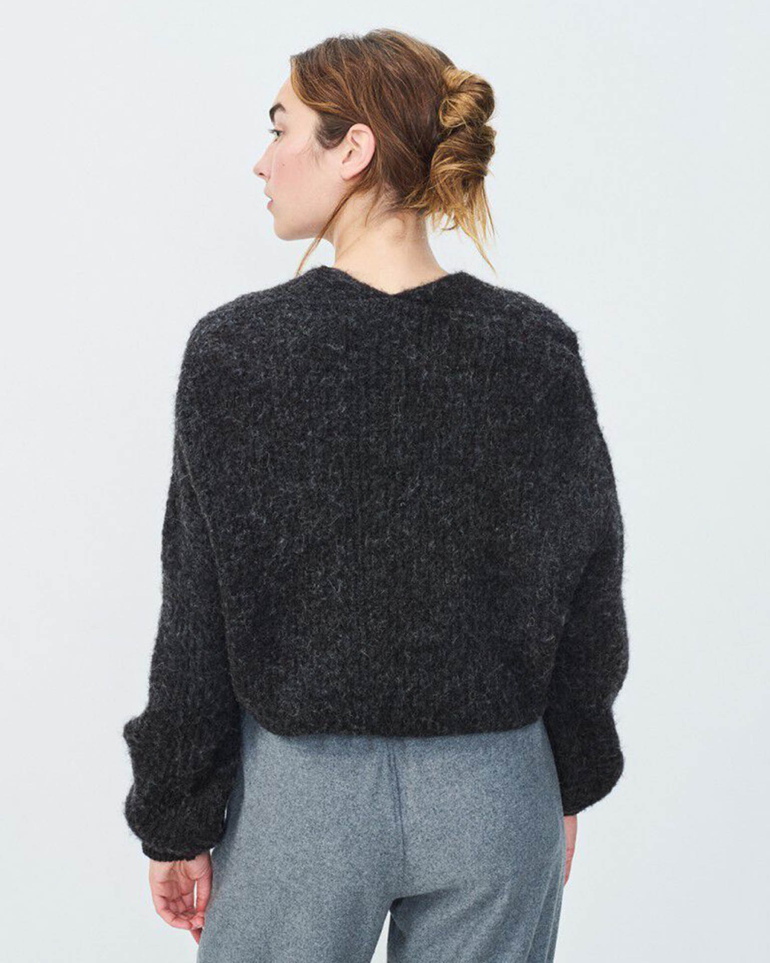 The East Cardigan is an easy, everyday layer from American Vintage in a lightweight wool blend shaker knit. This open cardigan is perfectly relaxed for a flattering fit and features an easy drop shoulder blouson sleeve with a dramatic contrasting ribbed cuff. It's chic, warm and comfortable, making it a cool weather no-brainer.