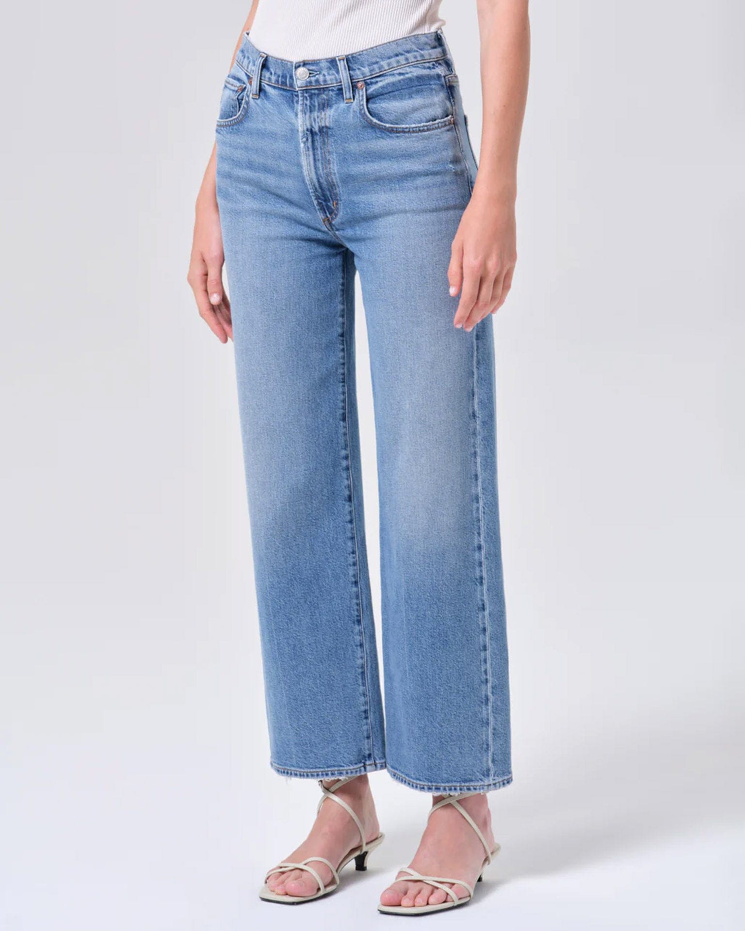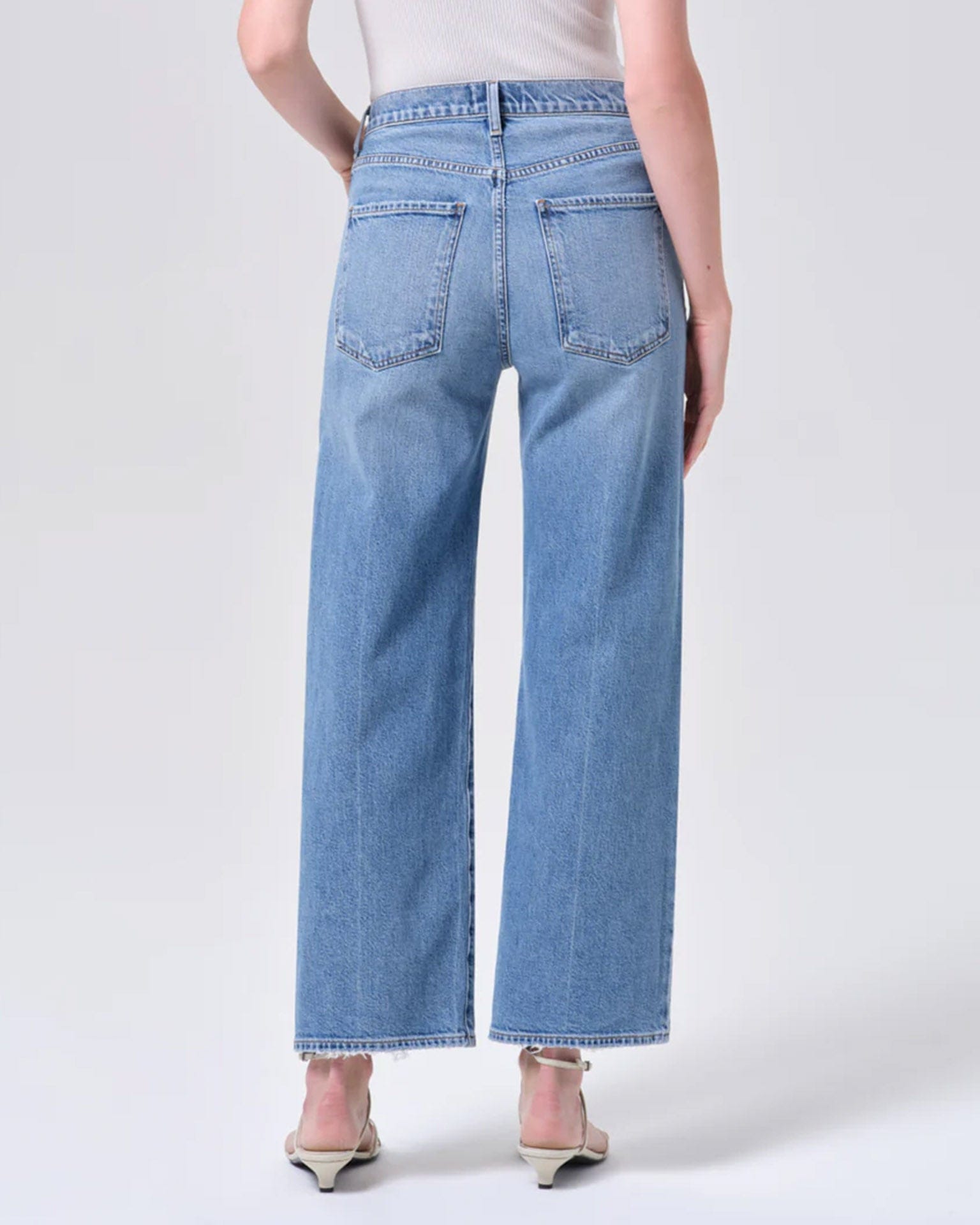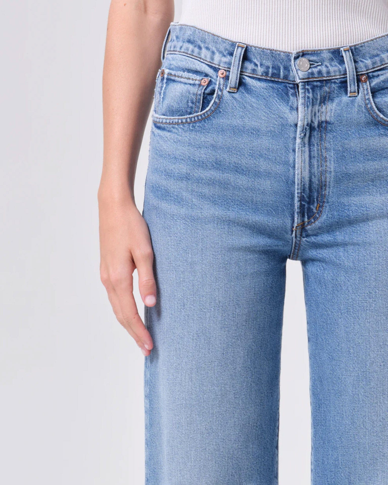 The Harper Crop from AGOLDE is an easy, everyday denim that's both on-trend and accessible. It's a mid rise straight leg featuring a flattering square top block and cut from a comfort stretch denim with uncompromising recovery. Its cropped inseam allows you to show off your favorite sandals, while its subtly wide leg silhouette offers room for taller boots.