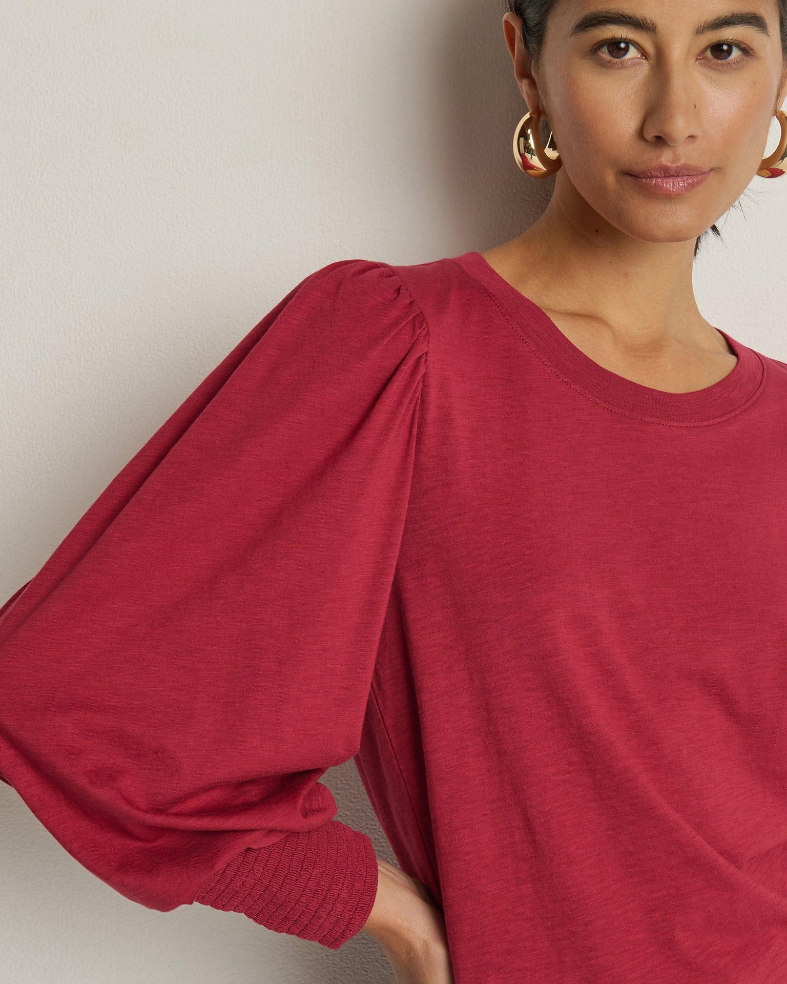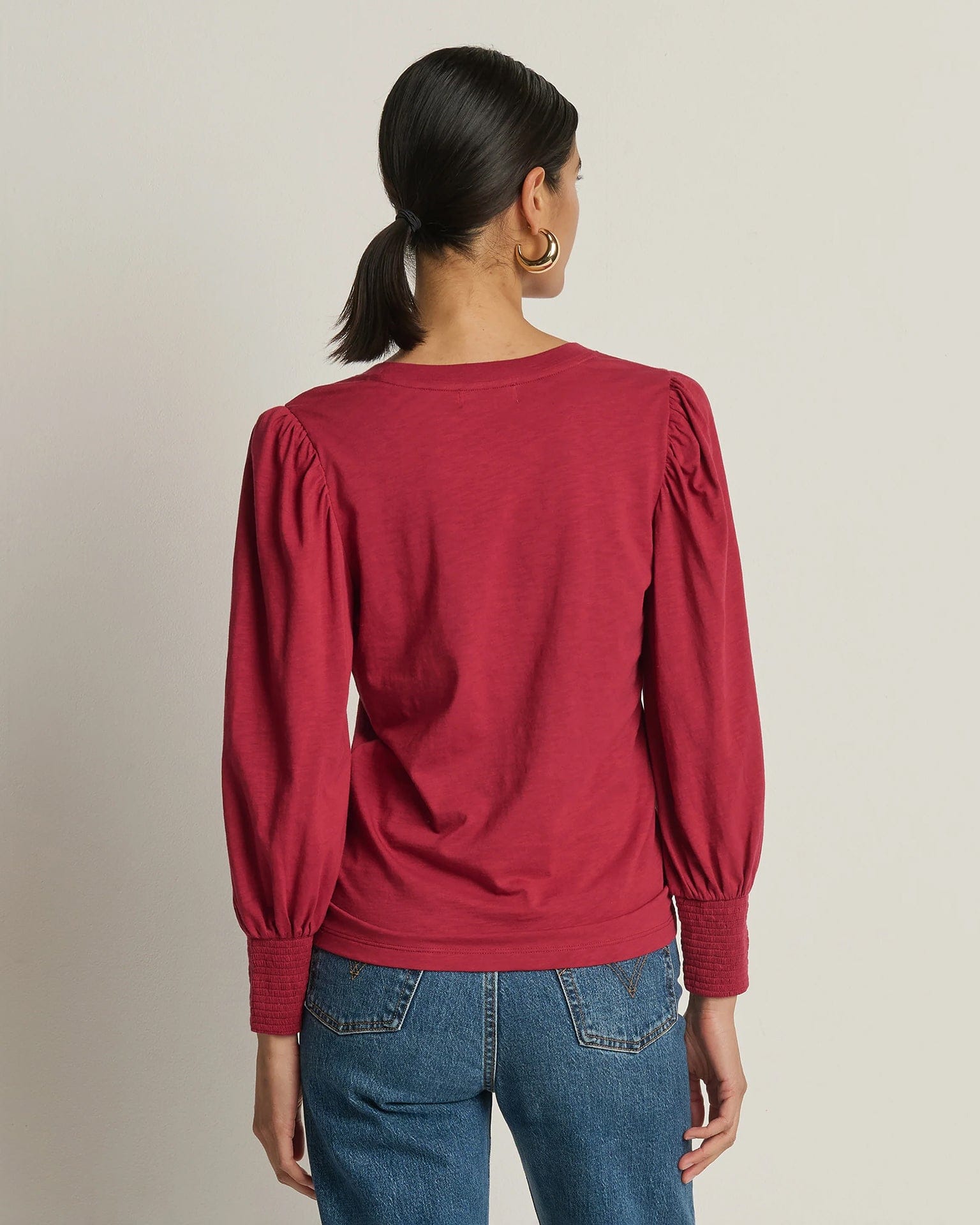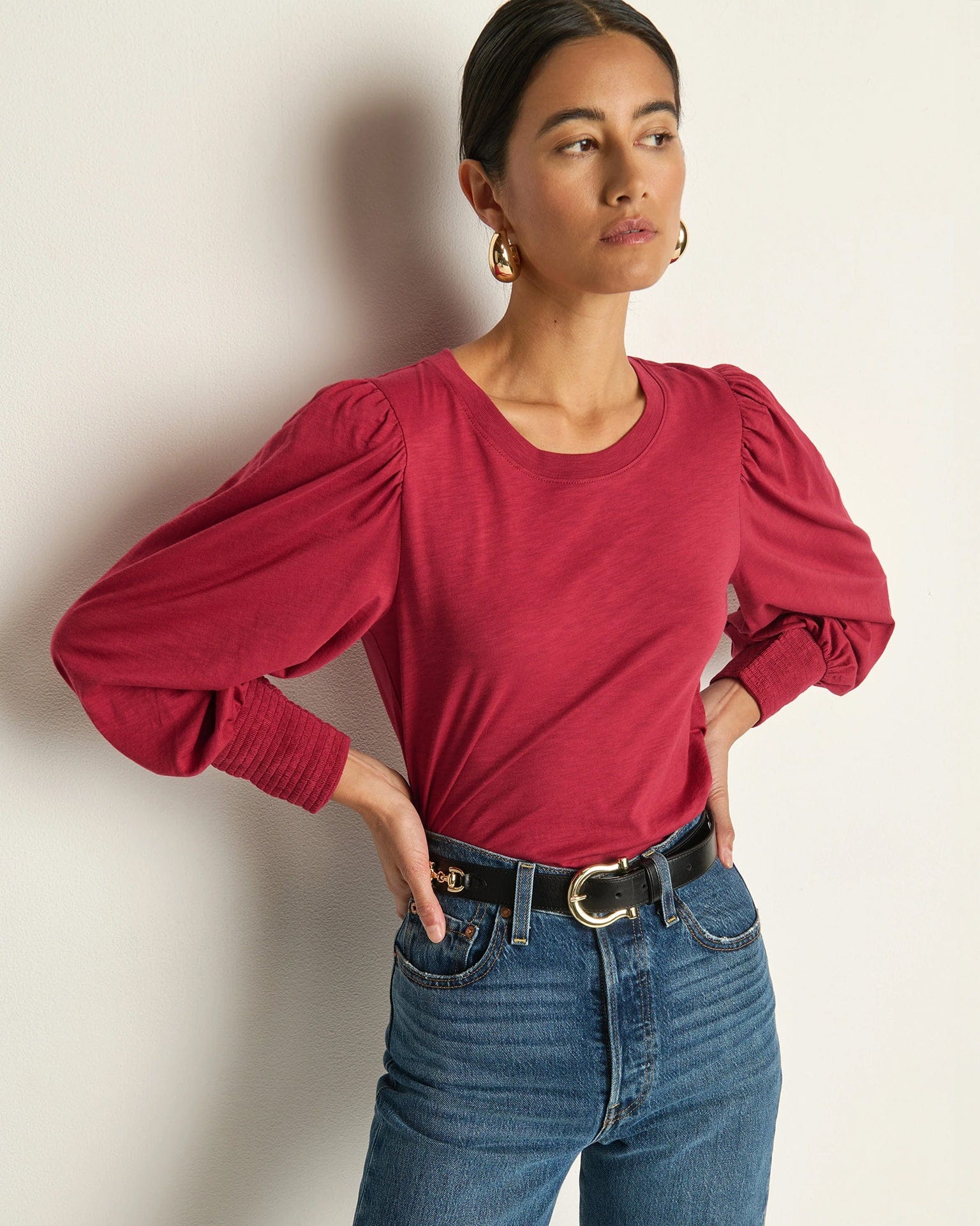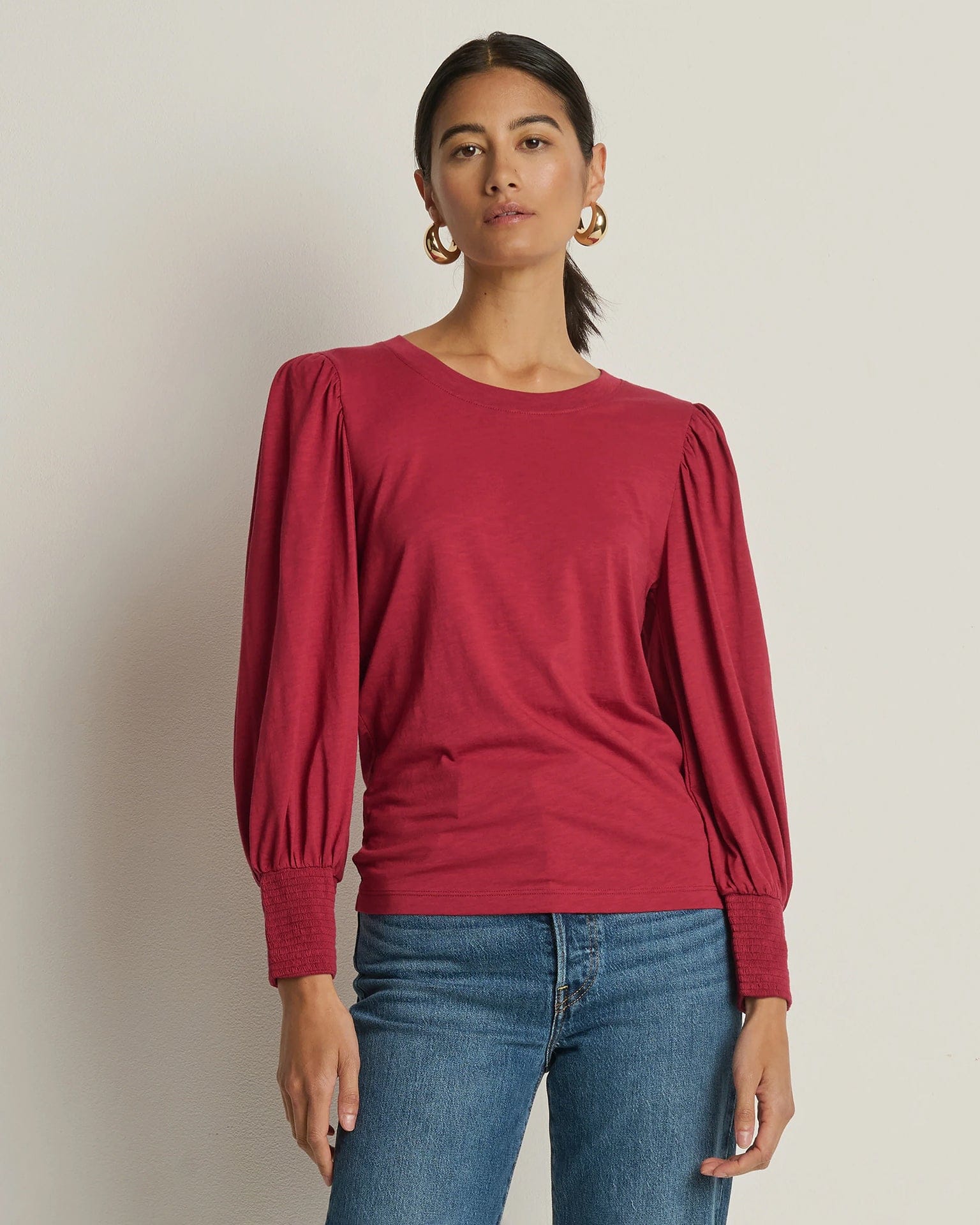 We love a good elevated tee, and Nation LTD has done it again with the Loren Peasant top. Featuring an exaggerated shoulder and voluminous 3/4 sleeve with a smocked cuff, this feminine fit will ensure you feel put together in the comfort of your favorite tee shirt.