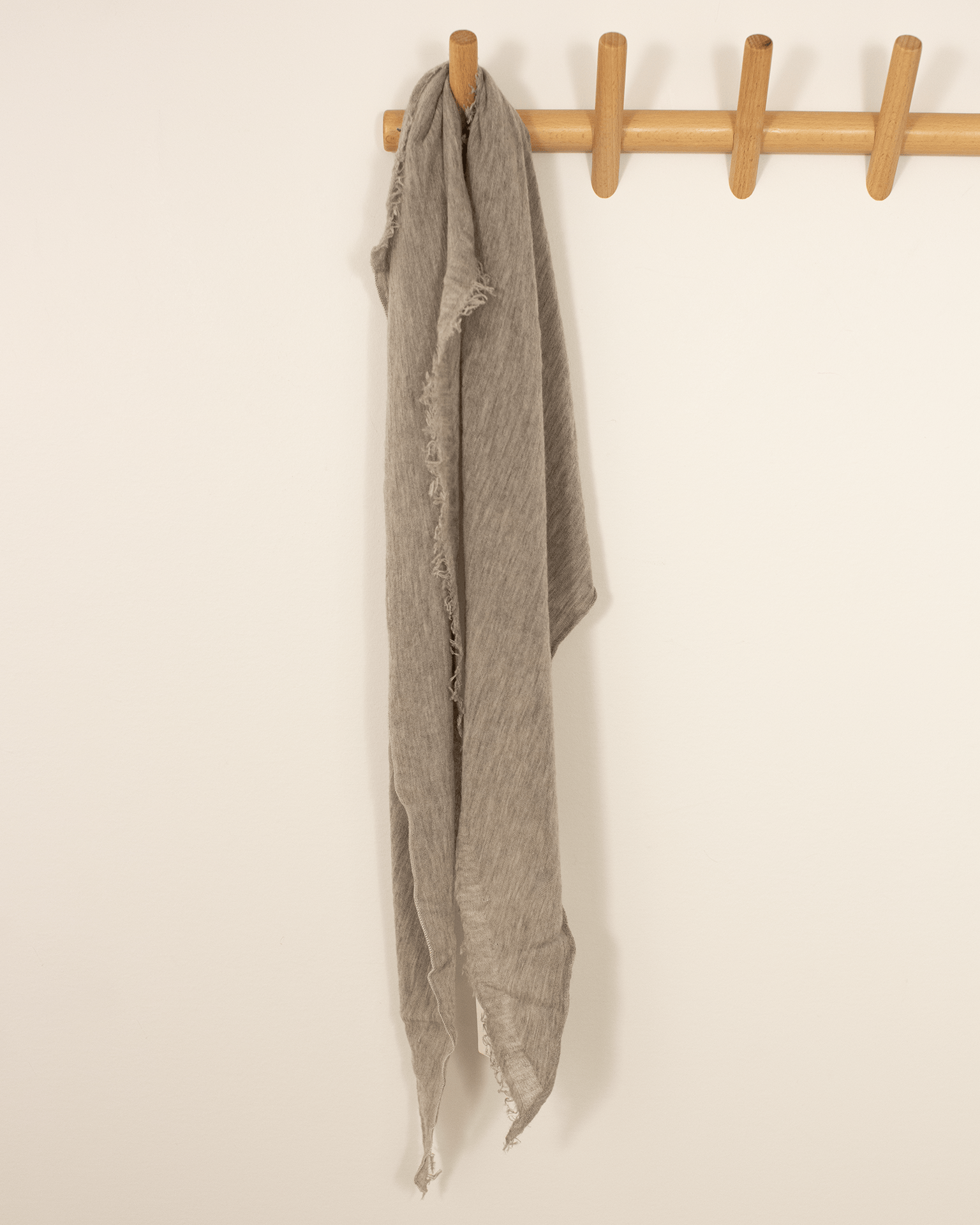 Grisal scarves are knit slowly on vintage machines from the softest, most luxurious yarns. No two scarves are alike, each scarf is knit on the bias and has fringe along the edges. This heather grey and cream striped scarf is as versatile as it is luxurious!