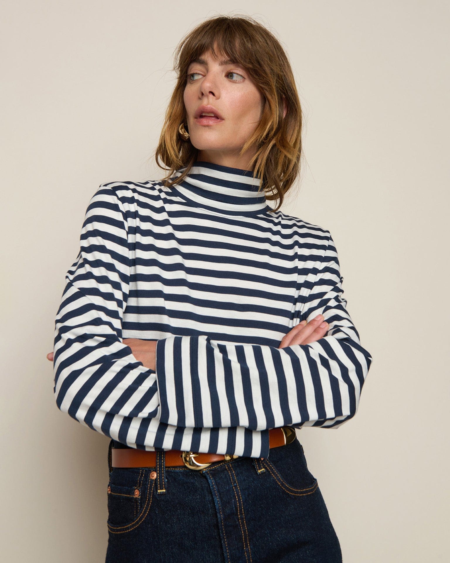 Neo Mock Neck T-Shirt in Seascape Stripe