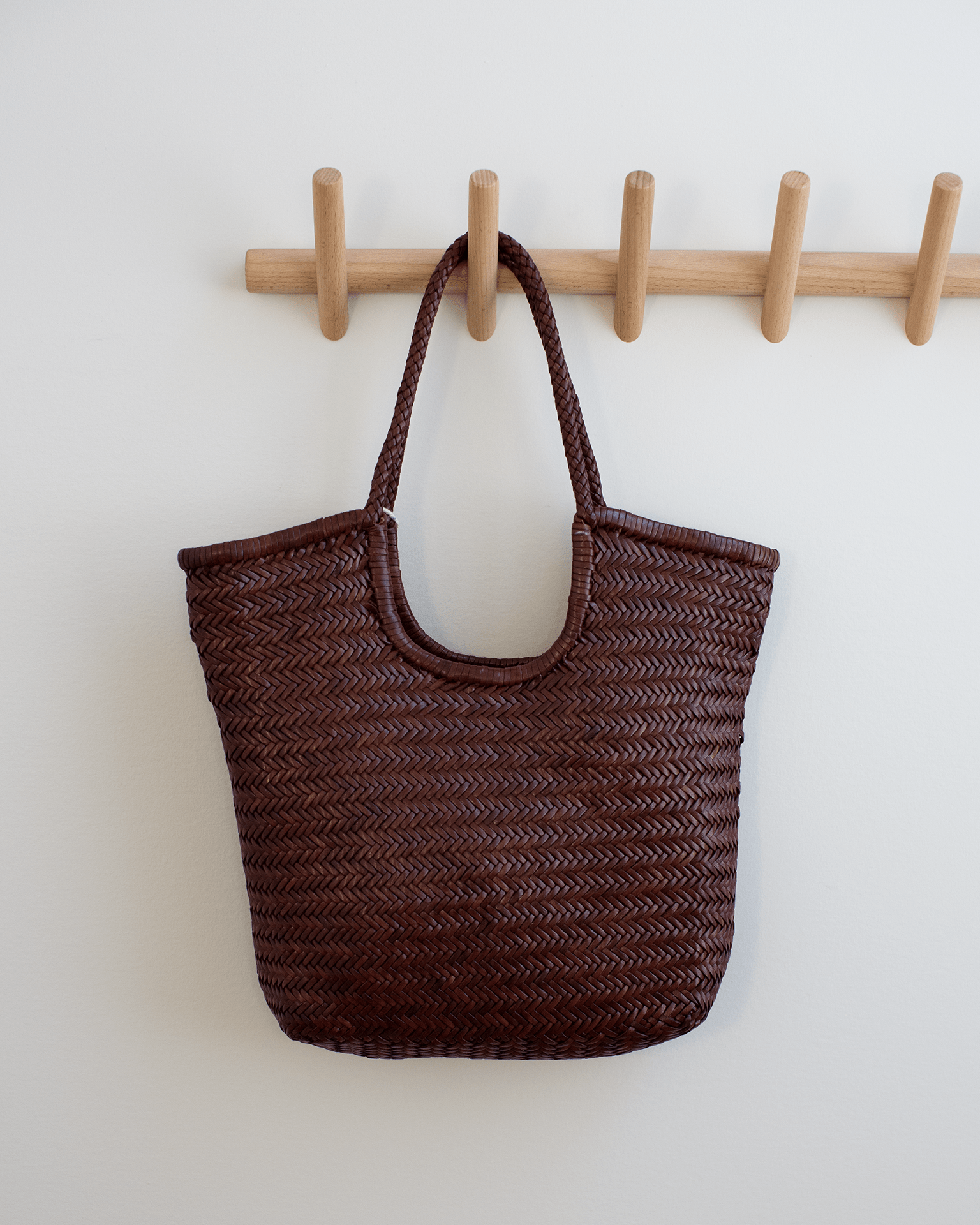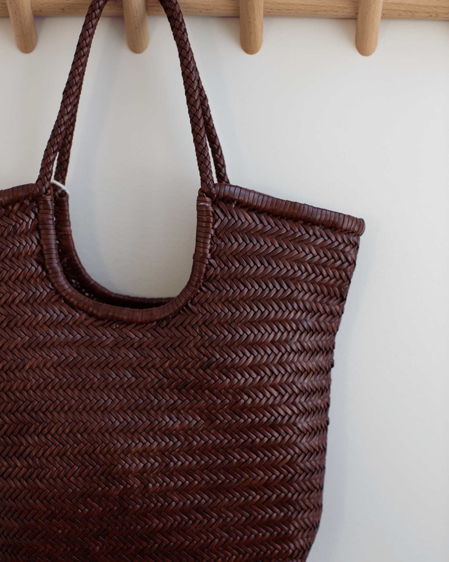 The laid back vibe of straw totes is paired with all the luxury and elegance of a leather bag in handmade Dragon bags. Each bag is handwoven with tanned leather around a wooden block that creates the structure and shape of the bag, and takes as long as a day and a half to craft. 100% crafted in India by a team of artisans, each bag is truly a work of art. Invest in a Dragon bag, and you'll have a lifelong accessory!