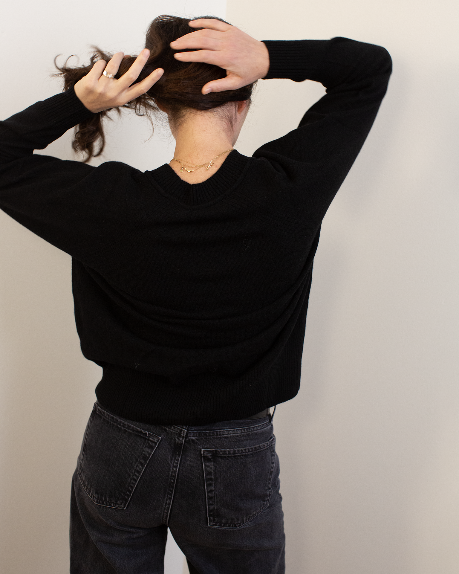 Relaxed Fit Raglan Crew W/ Rib Detail in Black