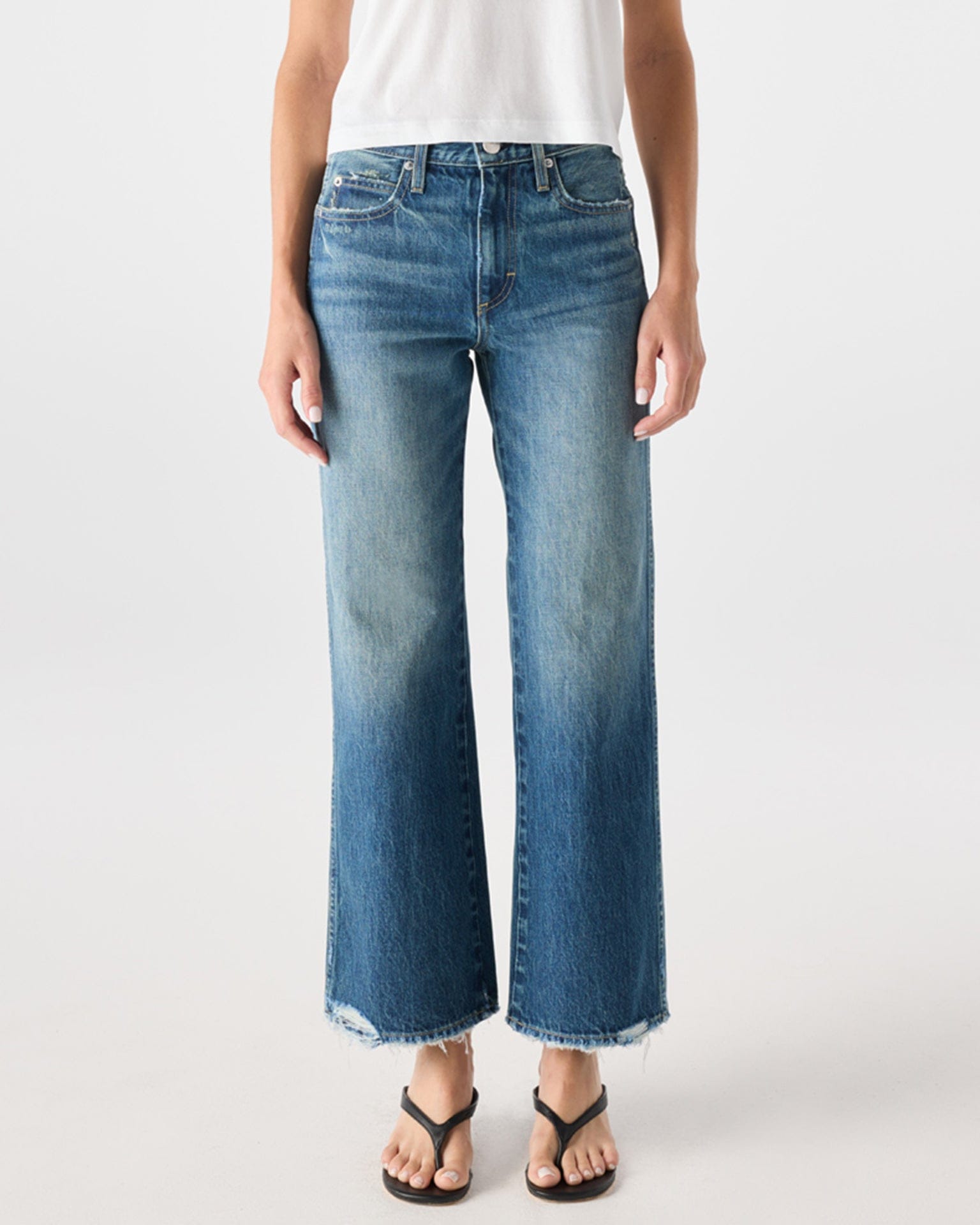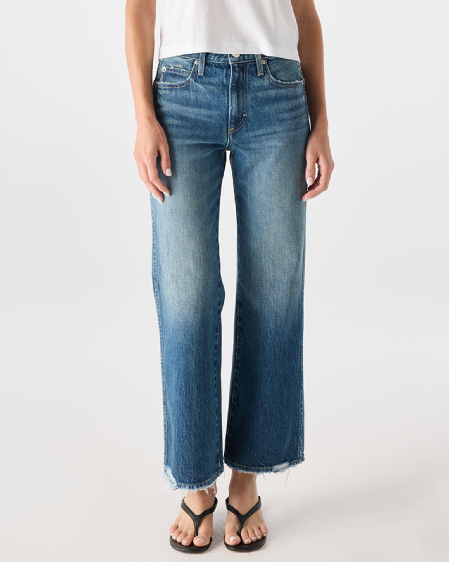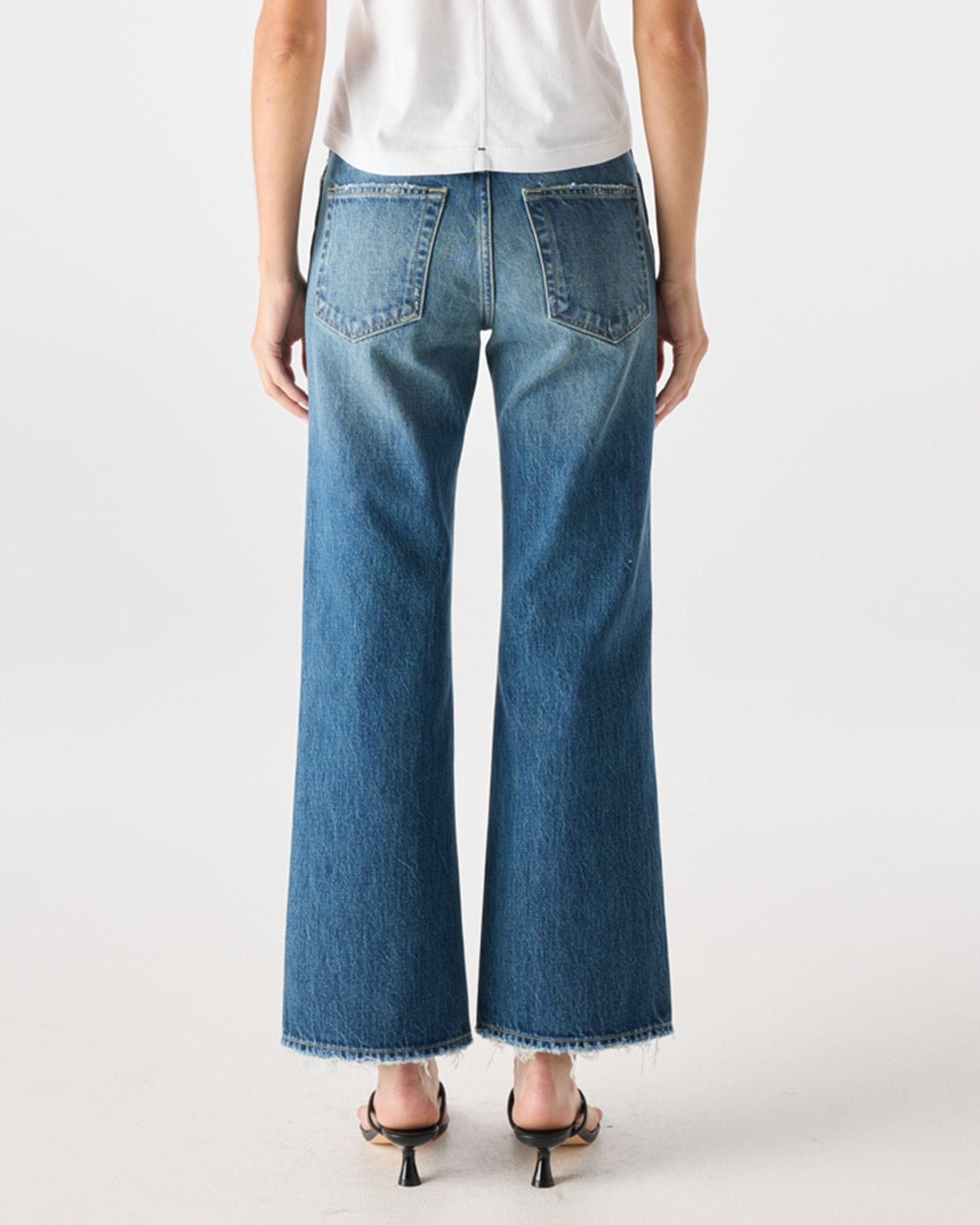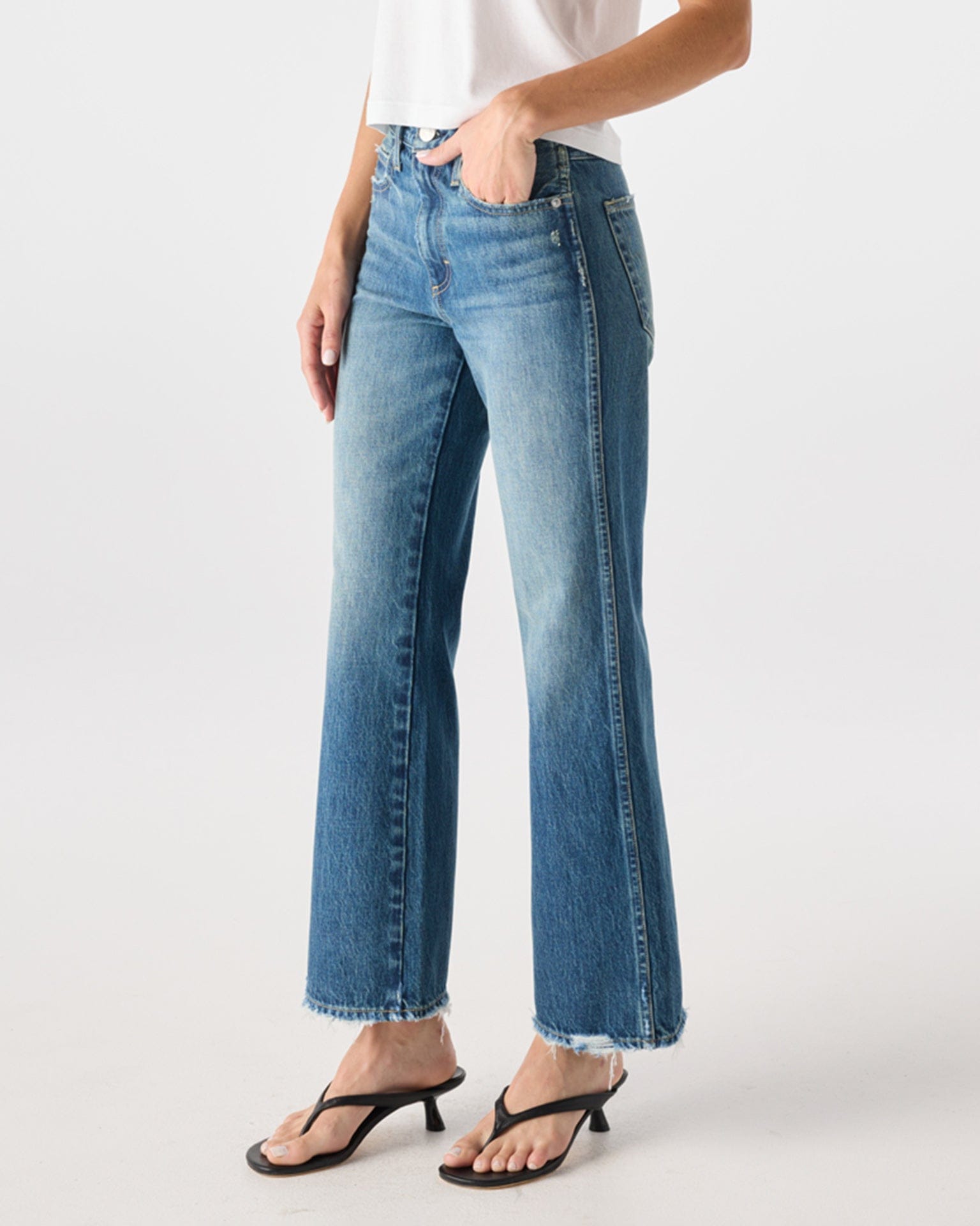 Robbie is a fresh silhouette from AMO that offers a cool, effortlessly lived in feel. This mid rise denim features a relaxed fit through the hip and a subtle, easy flare in a cropped length for that on-trend appeal. It's the kind of jean that instantly elevates your favorite tees.