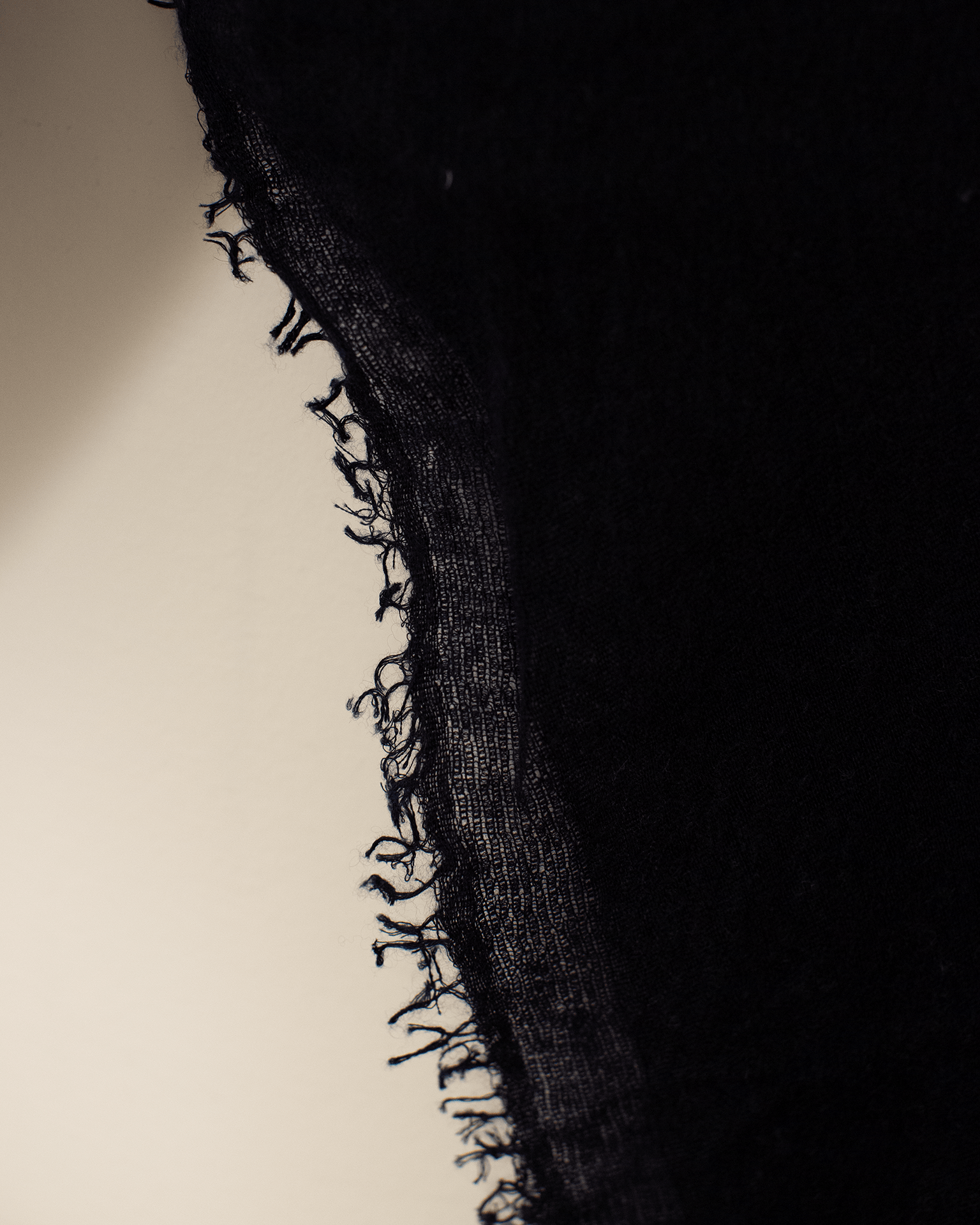 Grisal scarves are knit slowly on vintage machines from the softest, most luxurious yarns. No two scarves are alike, each scarf is knit on the bias and has fringe along the edges. This black scarf with cream contrast trim is as versatile as it is luxurious!