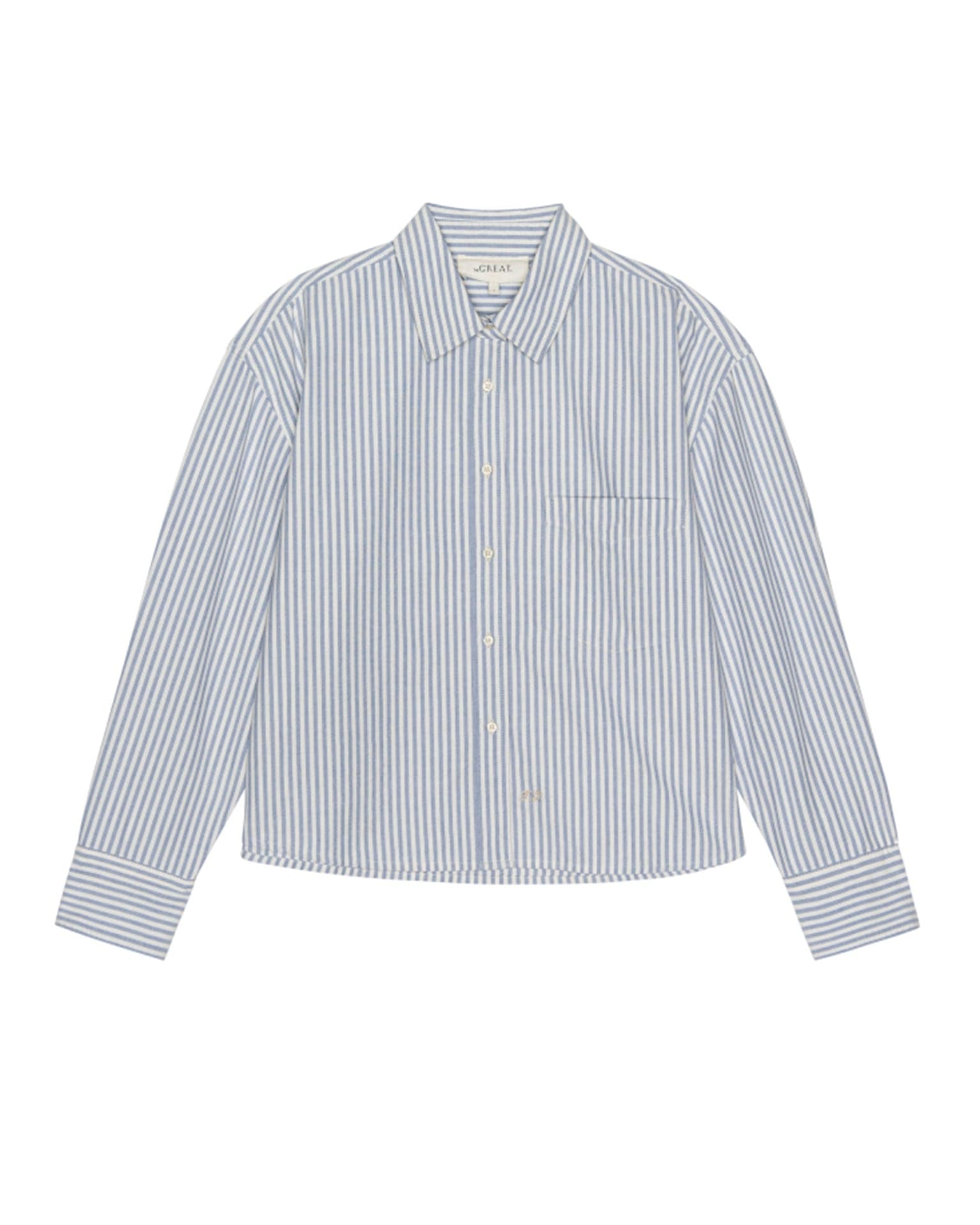 The Cropped Oxford Shirt in Soft Blue Stripe