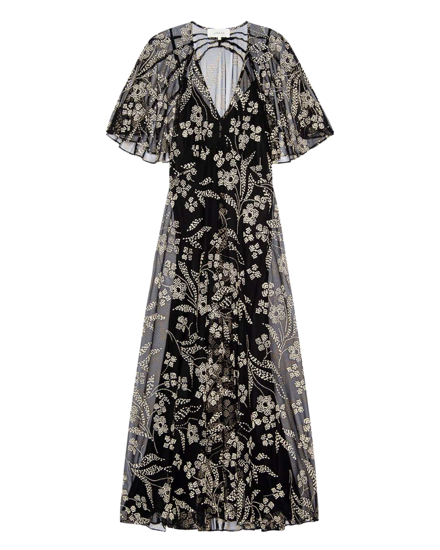 The Festal Dress from the GREAT. is a romantic nod to the 1930s, reimagined for modern ease. This dress fits slim through the body with an empire waist and a softly flowing skirt that drapes from the waist to the sweep. The low V-neckline and flutter sleeves lend gentle movement, while delicate seaming at the shoulders creates an effortlessly graceful shape. Crafted in printed mesh and finished with a removable slip for coverage.