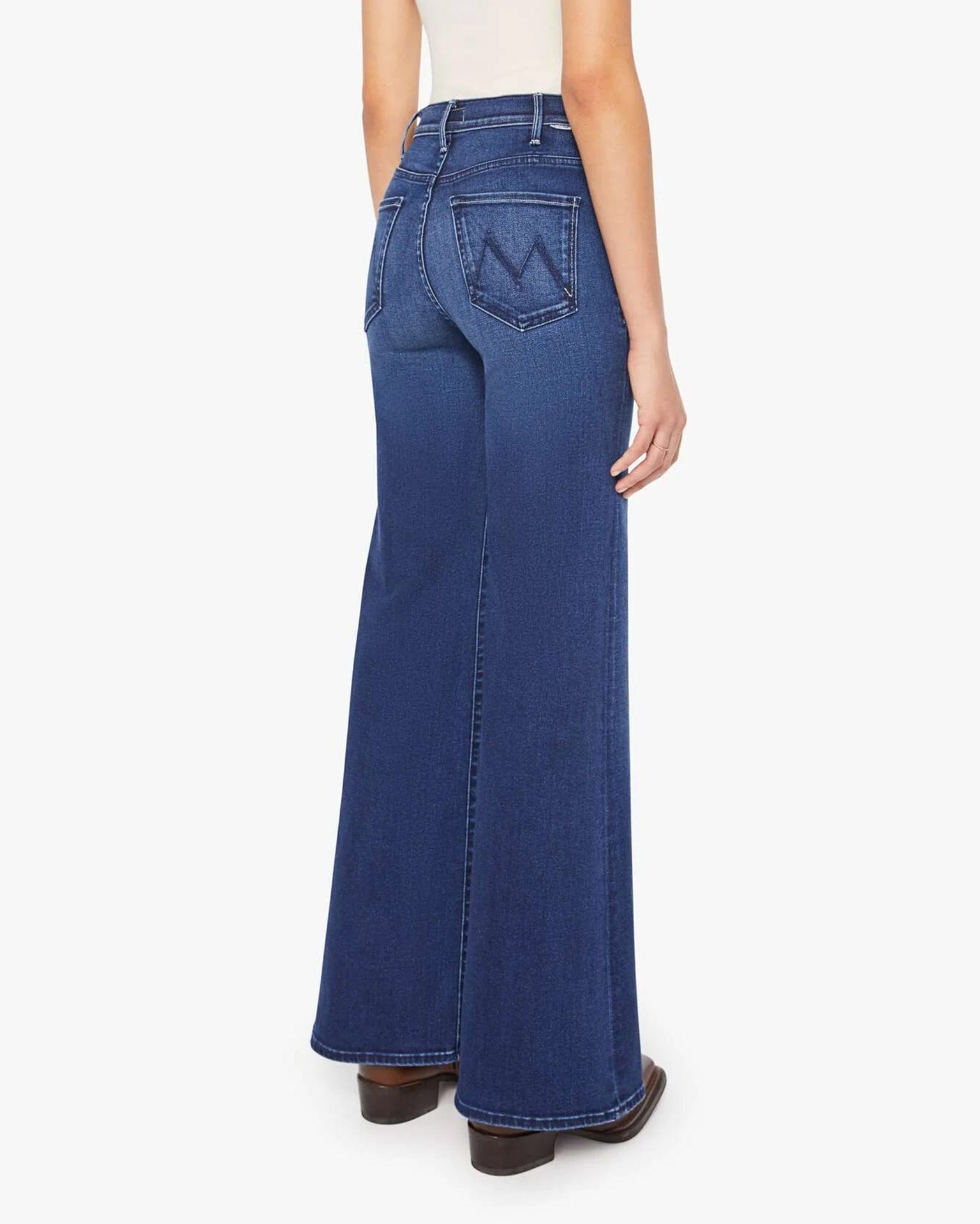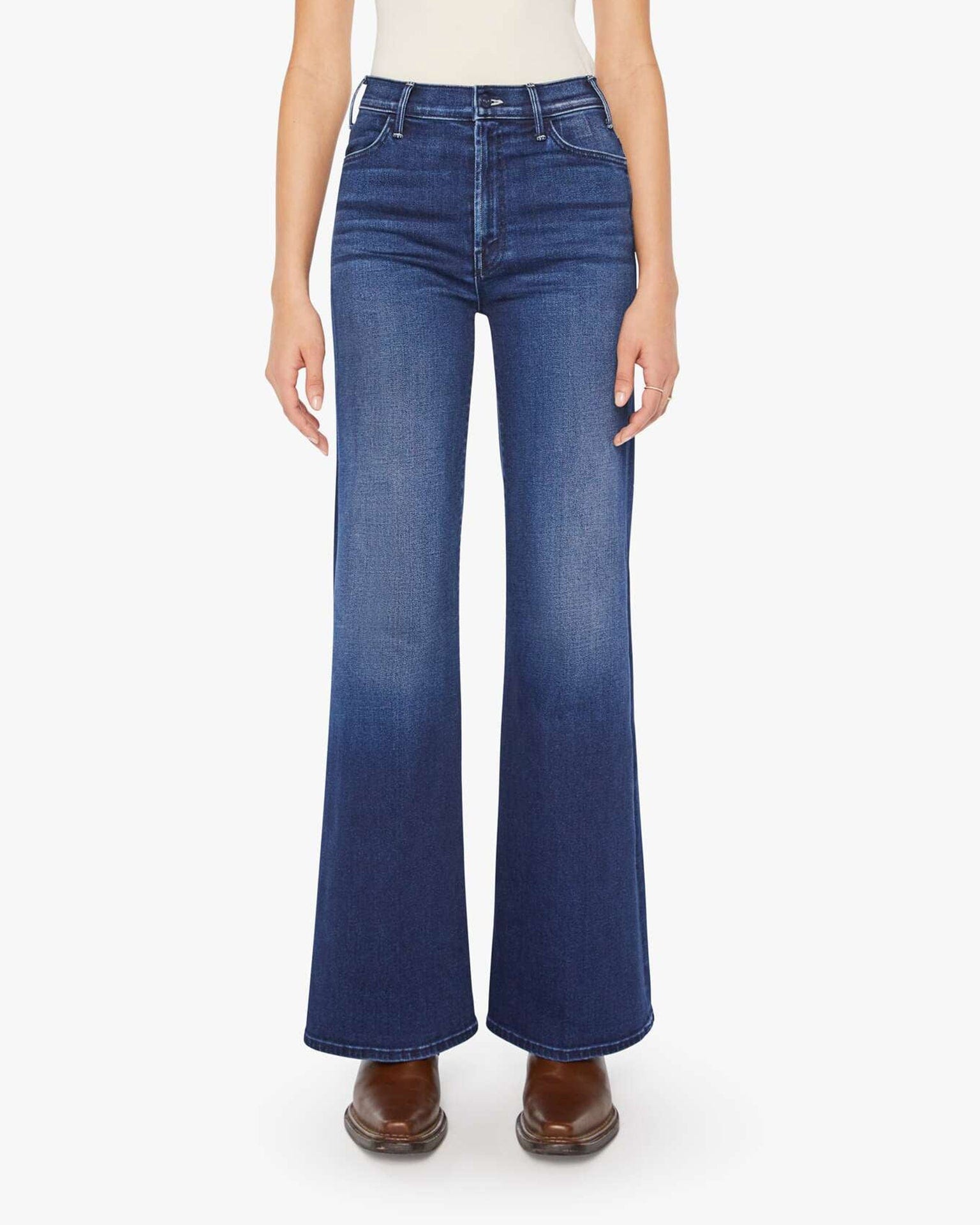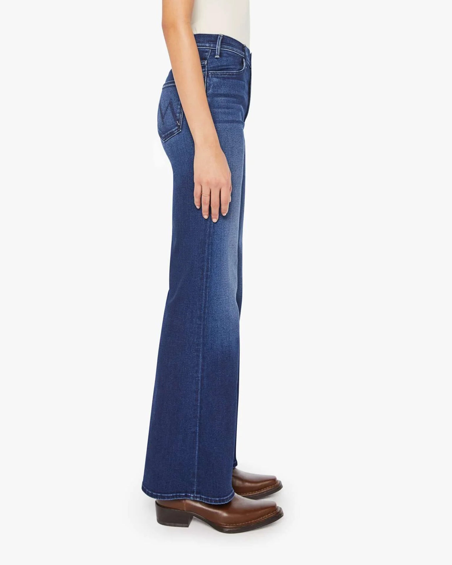 The Hustler Roller Sneak from MOTHER is a 70s-inspired wide leg jeans with a high rise, 32-inch inseam and a clean hem. Made from stretch denim for all day comfort, Homecoming High is an dark-blue wash with subtle whiskering and fading.
