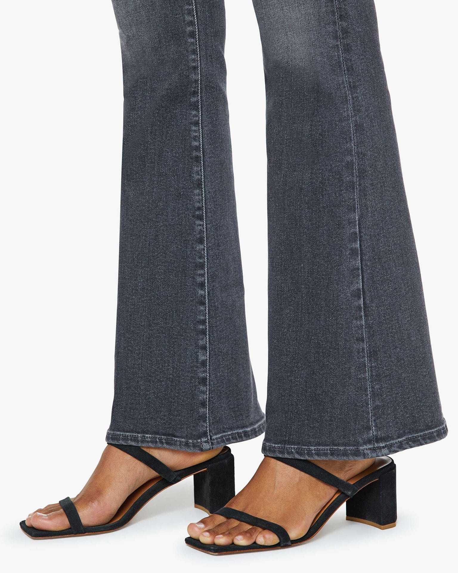 The Weekender from MOTHER denim is a cult-favorite flare jean has a mid rise with a 31-inch inseam and a clean hem. Cut from denim with a touch of stretch, Can You Call My Phone? is a faded black with subtle whiskering, fading and tonal hardware.